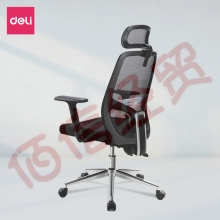 得力 deli 头枕可调电脑椅 人体工学办公椅 家用舒适转椅 钢制脚 33564S