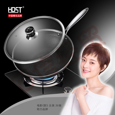 HDST 锋釜 304不锈钢不粘炒锅 家用少油烟炒菜锅具 带温度显示可定时FF-20123 自营