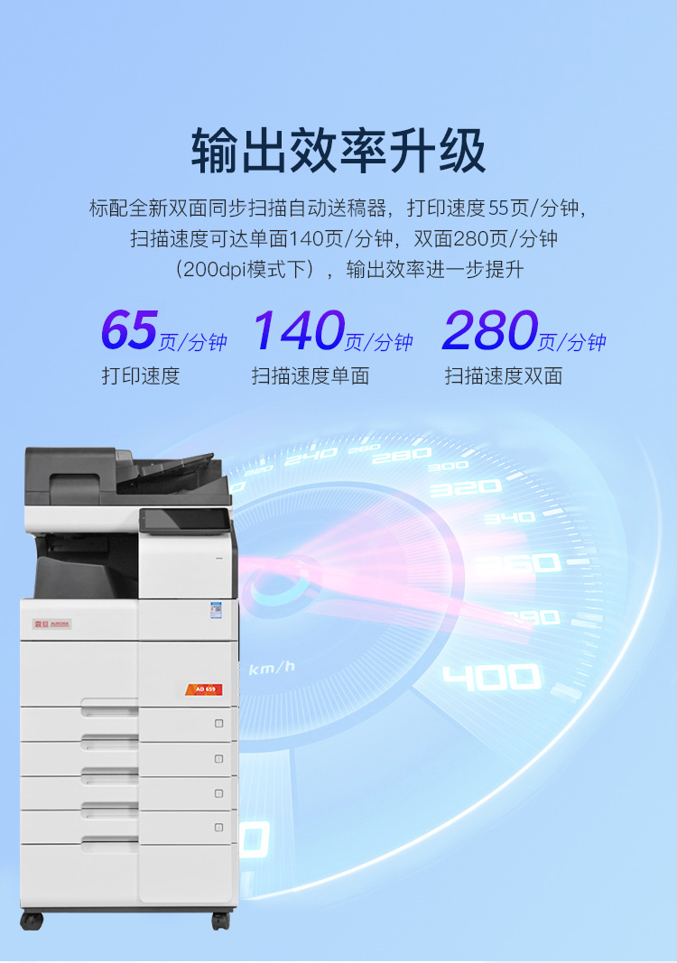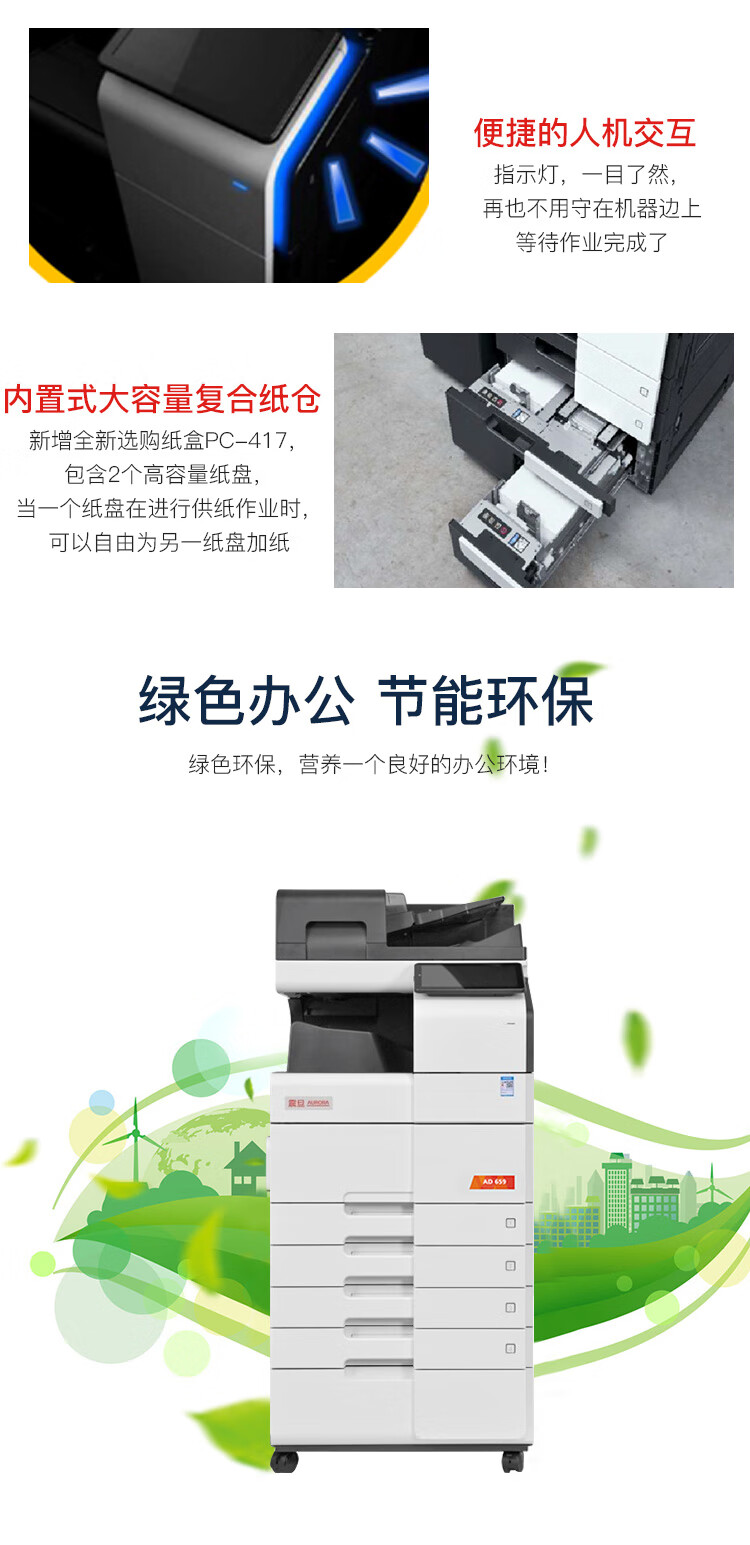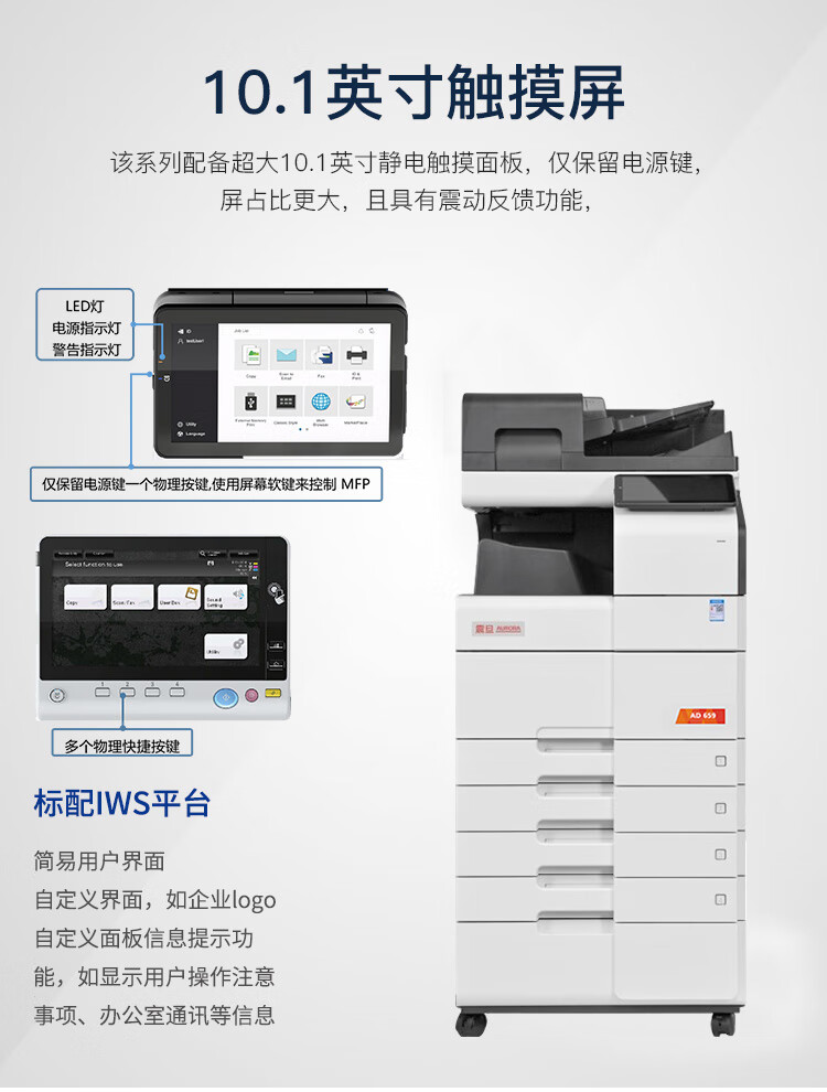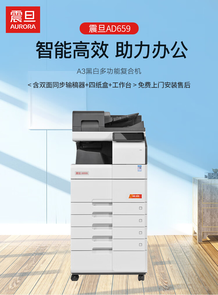 震旦(AURORA)AD659 A3黑白多功能数码激光复合机(含双面同步输稿器+四纸盒+工作台)免费上门安装售后 自营
