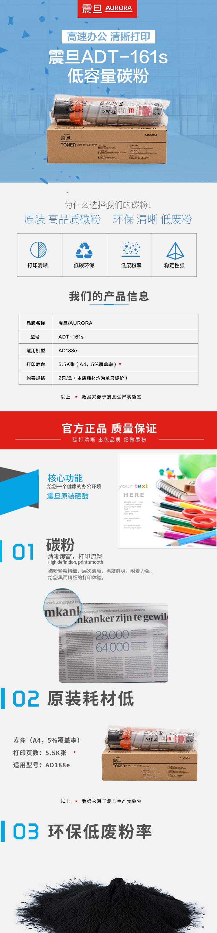 震旦(AURORA)ADT-161s低容量碳粉(适用AD188e/AD188en)约5000页(企业版) 自营
