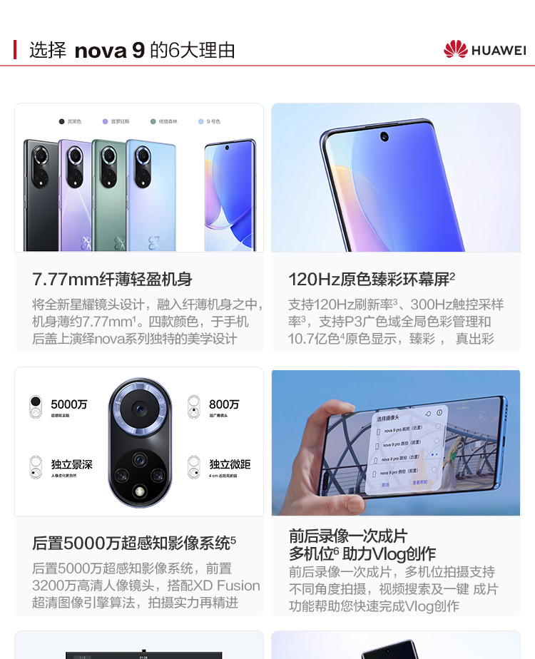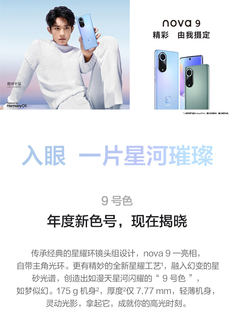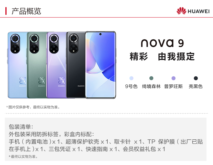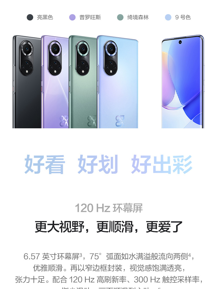 华为_HUAWEI_nova_9_120Hz高刷_后置5000万超感知影像_搭载HarmonyOS_2_8GB+128GB_9号色华为手机_标配无充 自营