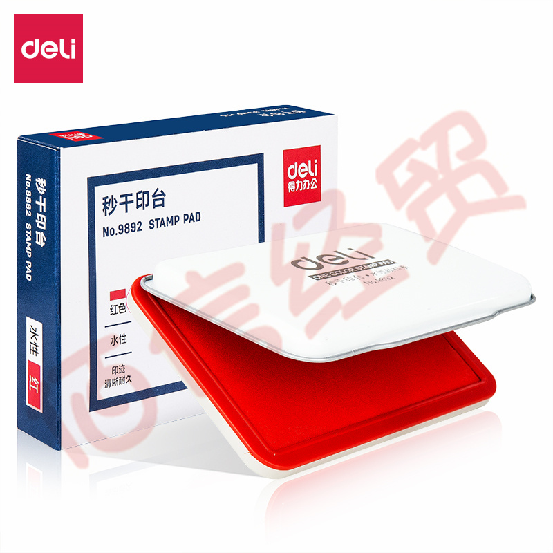 得力(deli)9892-120*80mm金属方形中号秒干印台印泥 办公用品 红色 自营