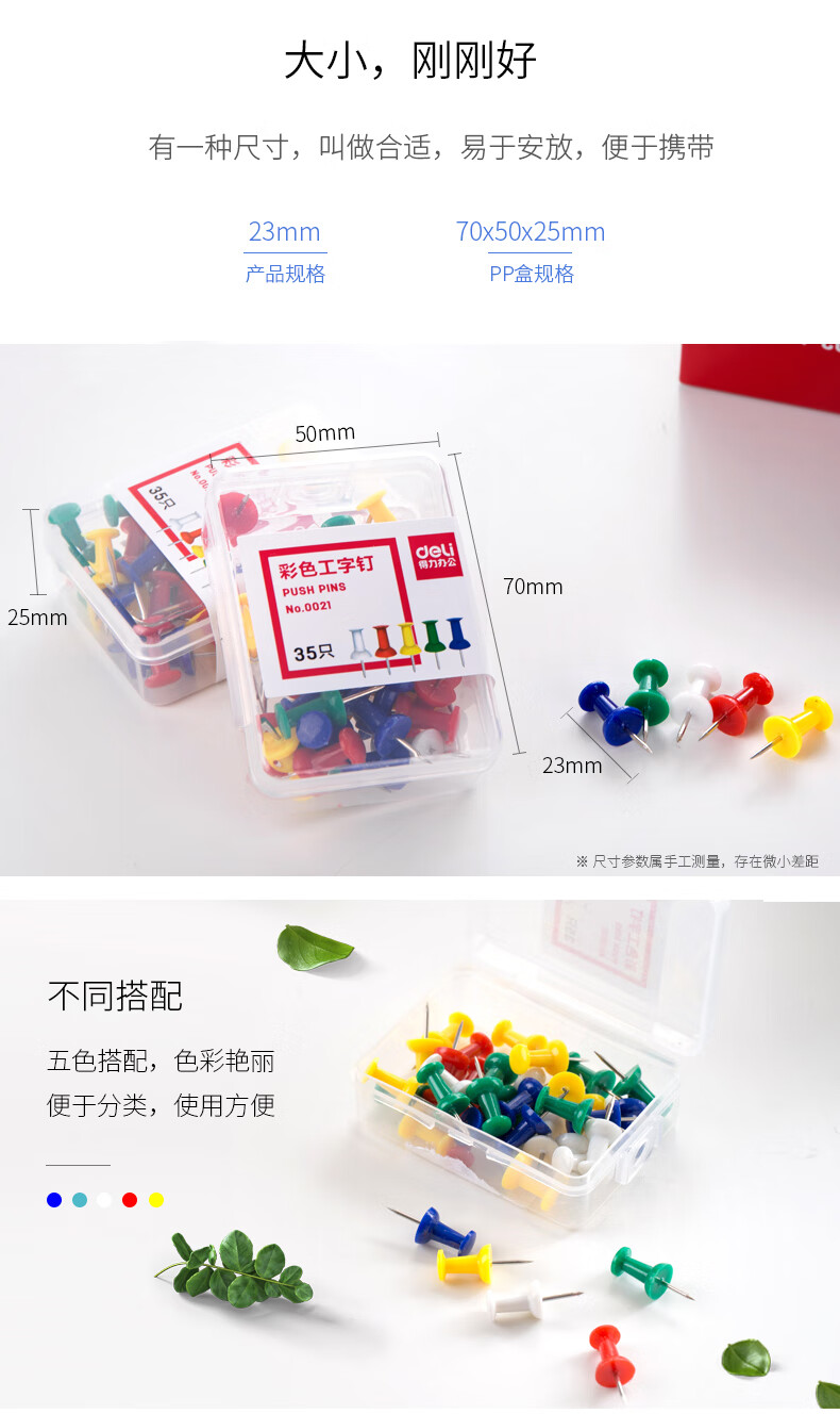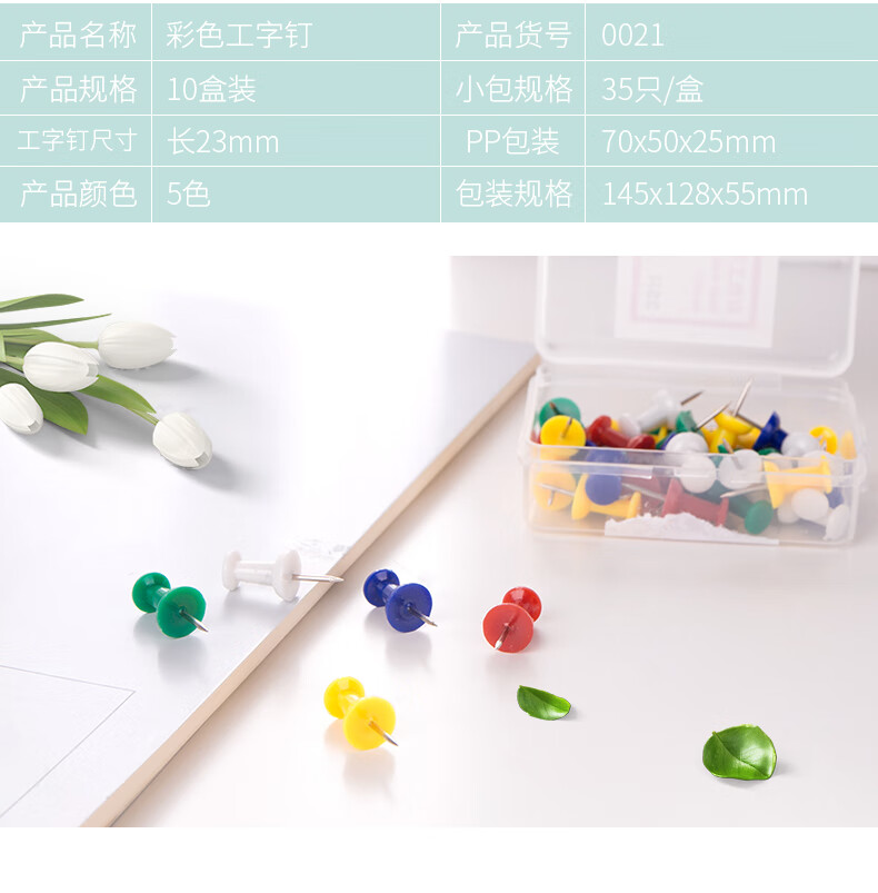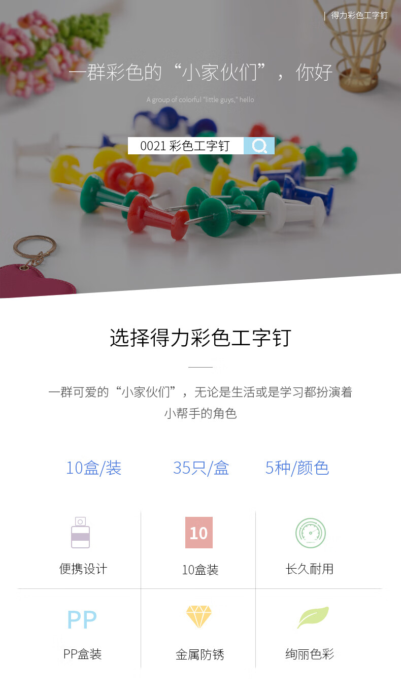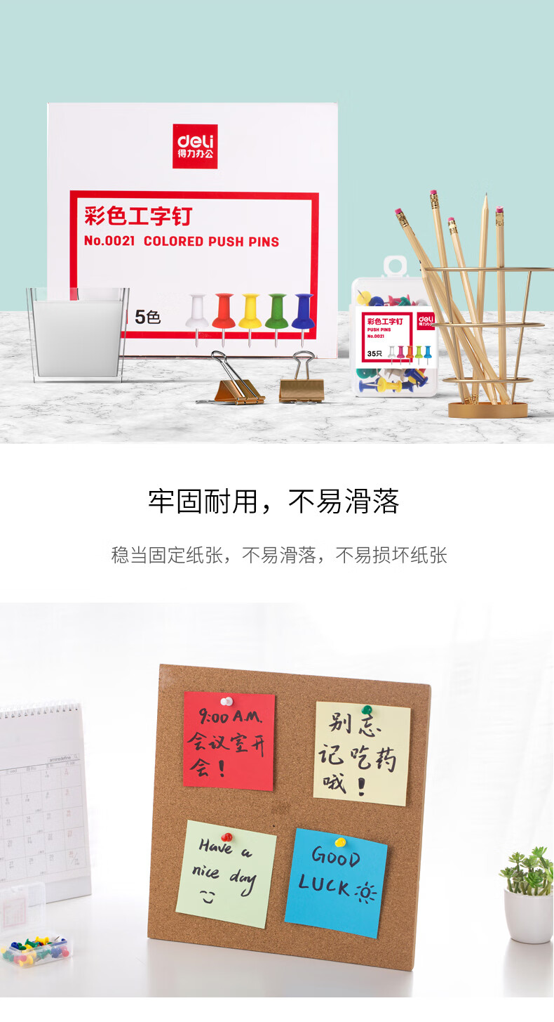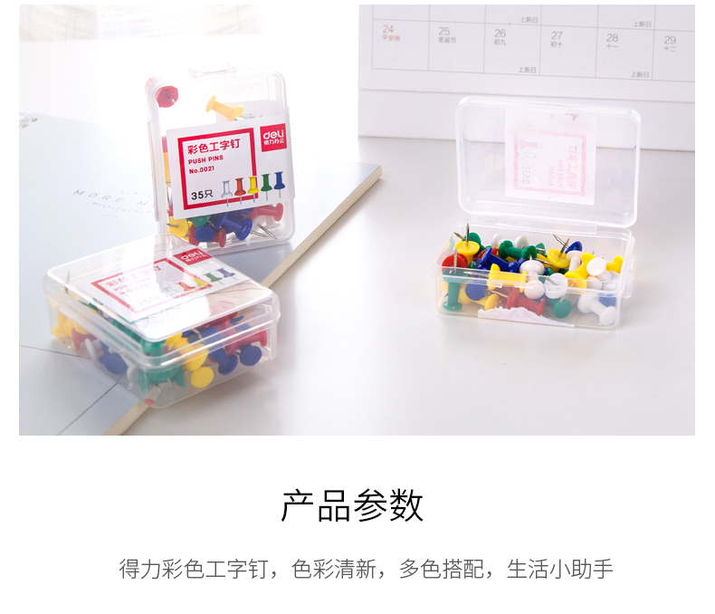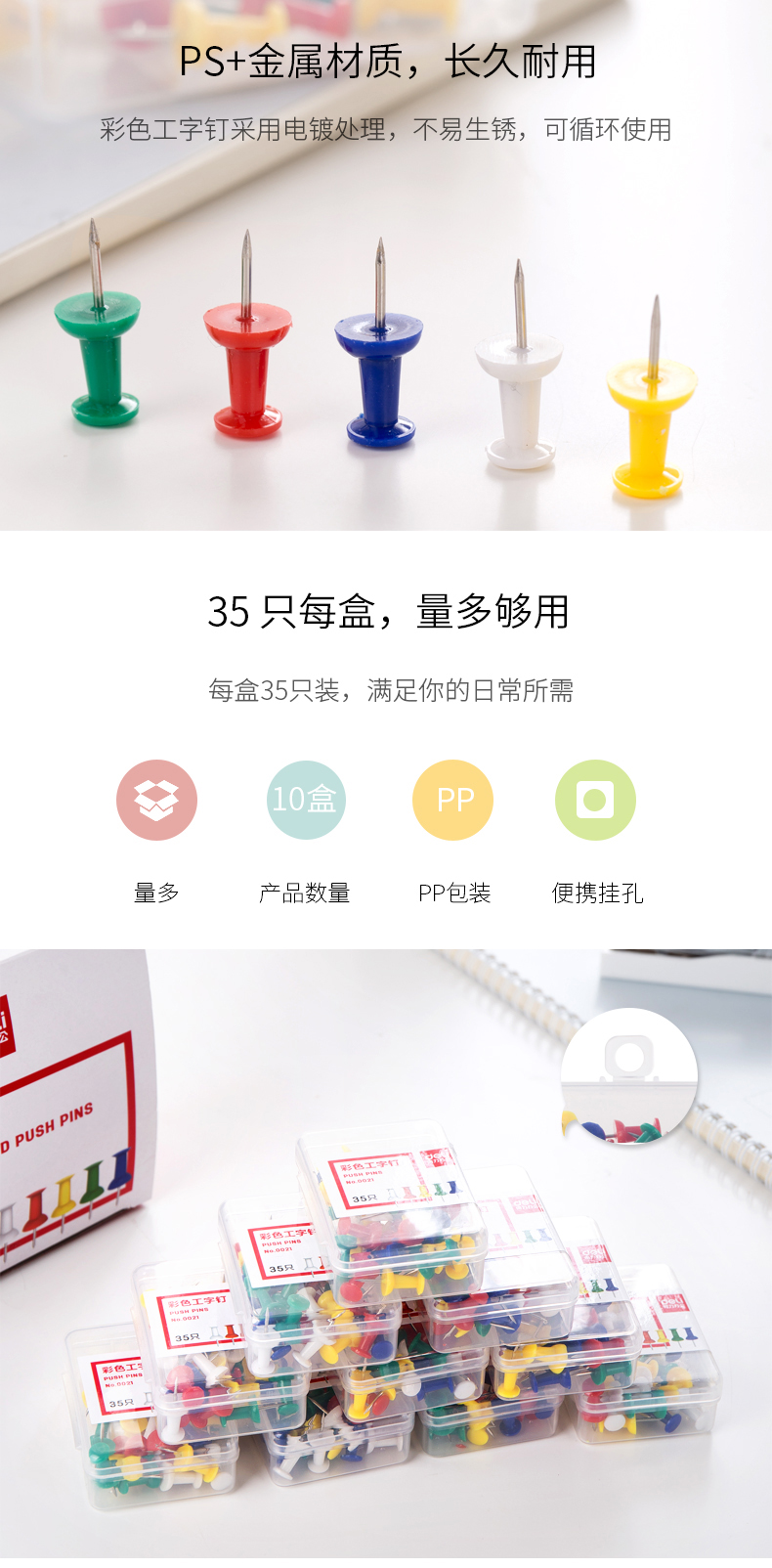 得力(deli)0021彩色工字钉(混)(35枚/盒)20盒 自营