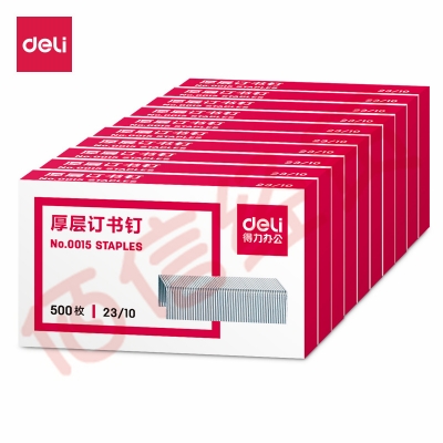 得力(deli)23/10厚层订书钉/订书针 500枚/盒 10盒装 办公用品 0015 自营