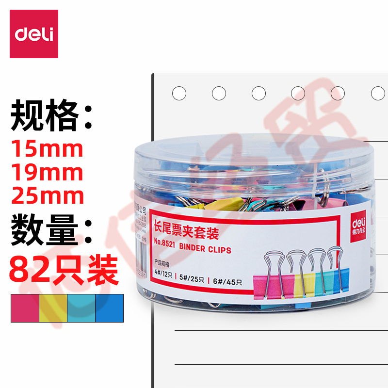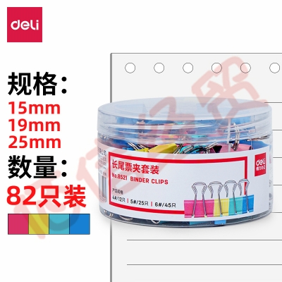 得力(deli)82只组合装彩色长尾夹/燕尾夹/票夹/文件夹(25mm*12只+19mm*25只+15mm*45只) 办公用品 8521 自营