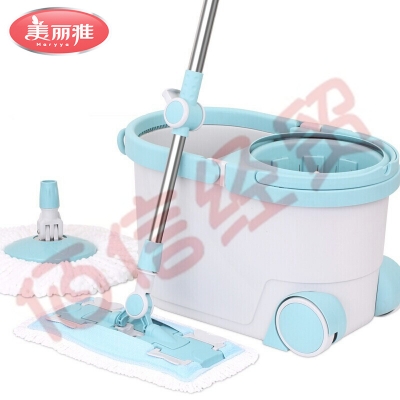 美丽雅 平板拖把 旋转甩水拖把桶一拖两用免手洗懒人墩布 共2个拖头 自营