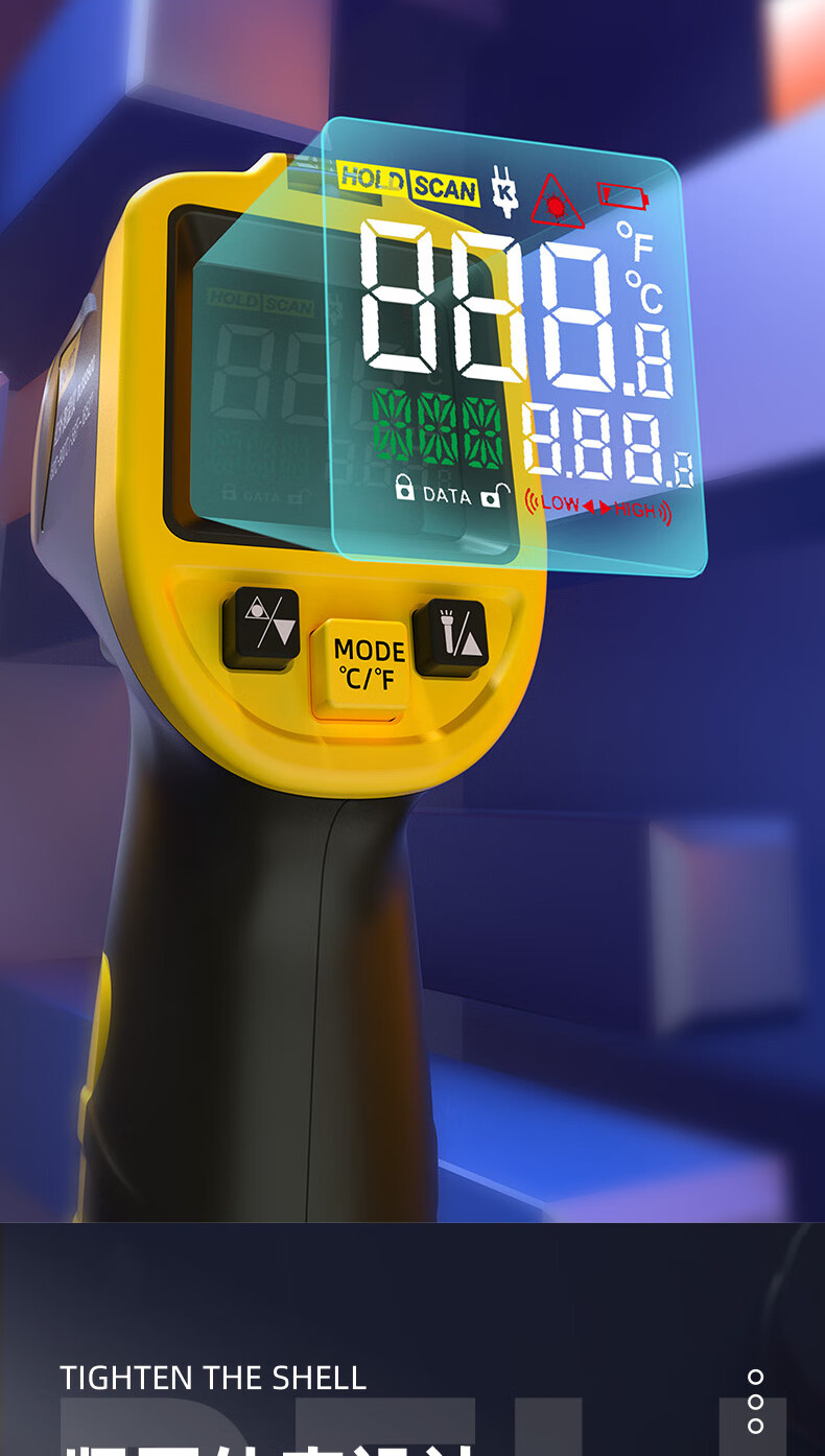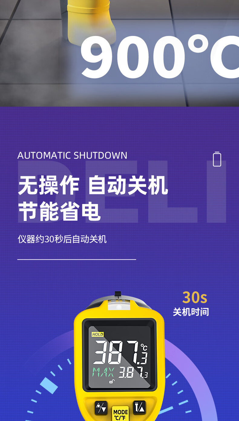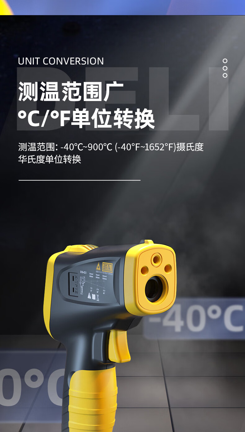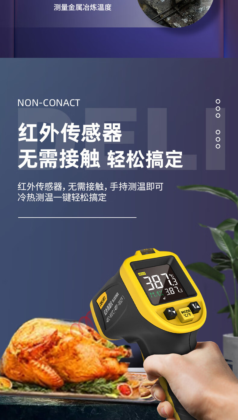 得力(deli) 非人温彩屏款红外线测温仪食品烘焙测温枪水温油温电子温度计高清数显(-40到900度)DL333900