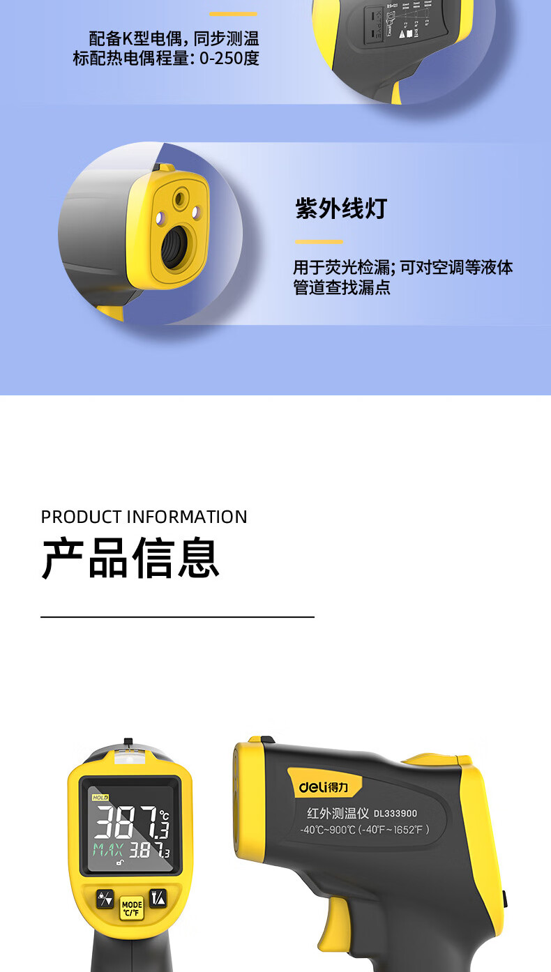 得力(deli) 非人温高温测温枪工业红外线测温仪高精度油温度计水温检测仪油温枪(-30到1350度)DL333130