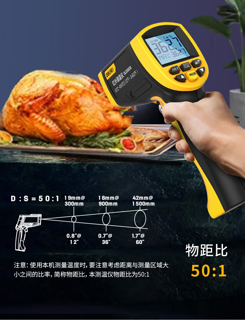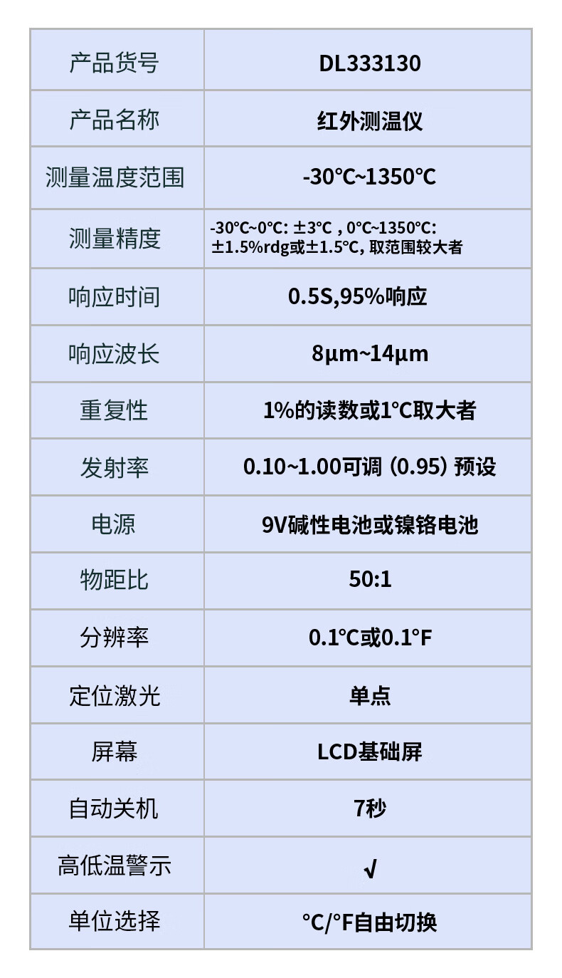 得力(deli) 非人温高温测温枪工业红外线测温仪高精度油温度计水温检测仪油温枪(-30到1350度)DL333130