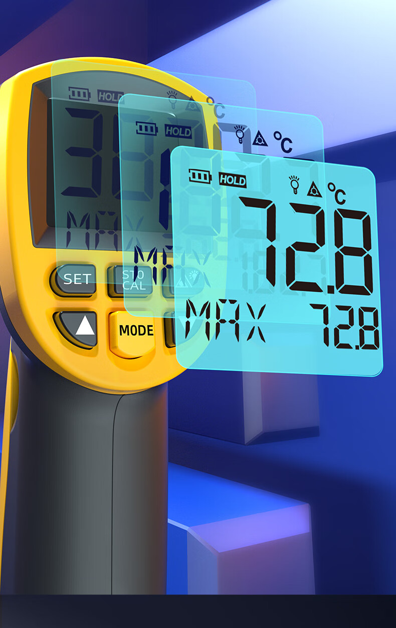 得力(deli) 非人温彩屏款红外线测温仪食品烘焙测温枪水温油温电子温度计高清数显(-40到900度)DL333900