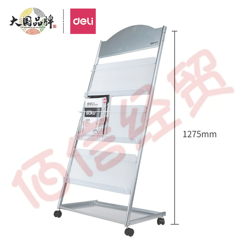 得力(deli)3层商务金属报刊杂志架书刊架 宣传册展示架落地资料架 高1.27米 9308