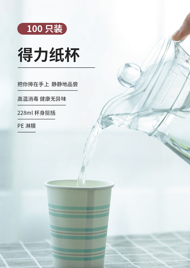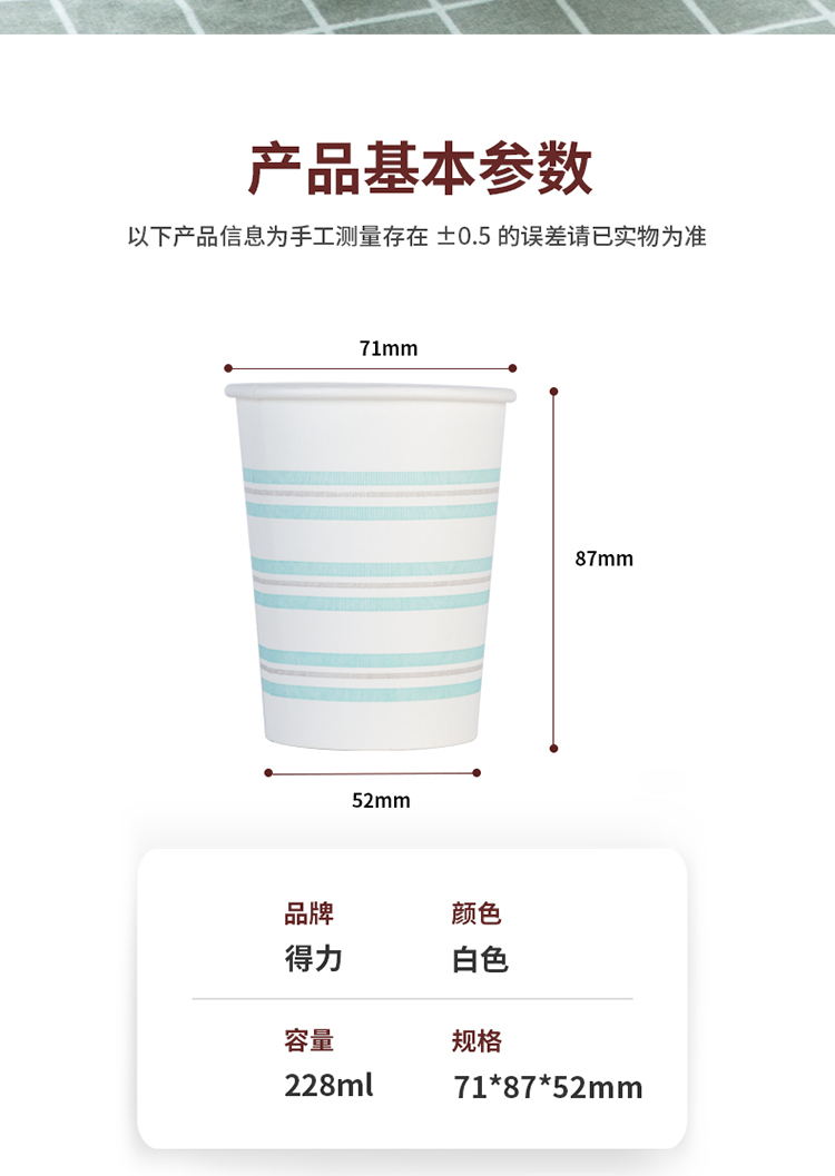得力(deli)19205 228ml加厚一次性杯子 纸杯/水杯 原纸消毒制作 100个装(每件20包) 自营