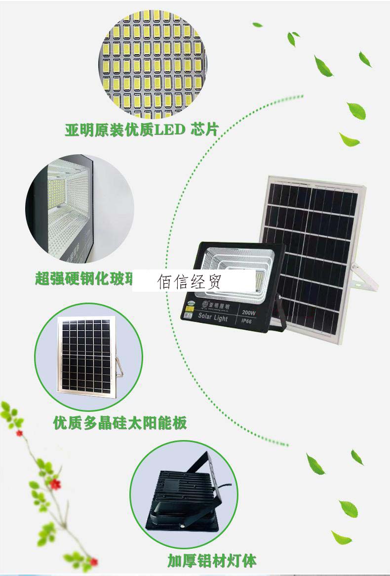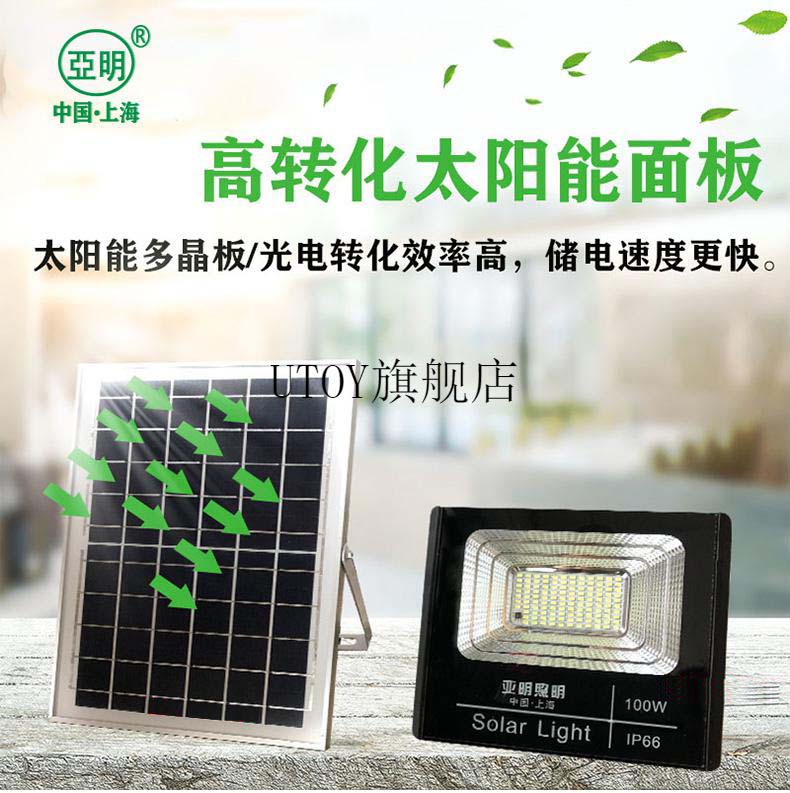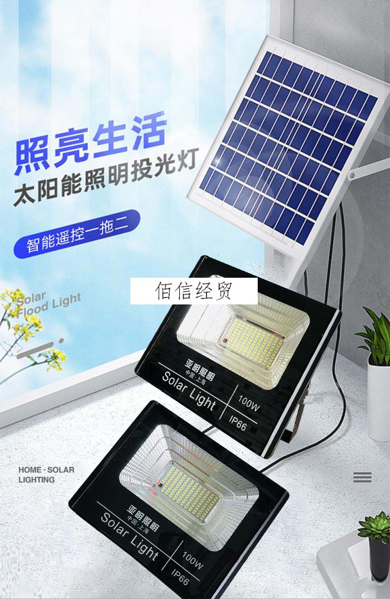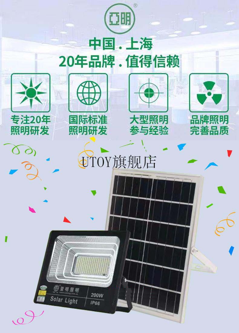 2022新款亚明太阳能灯 上海太阳能超亮户外防水w200w室外新农村LED投光照明路灯 亚明太阳能200w光控+遥控 自营