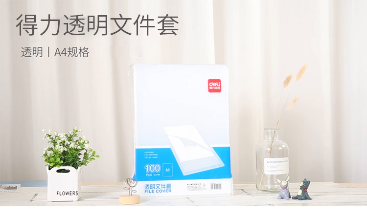 得力(deli) A4透明文件套 办公用品 L形E310文件夹两页夹 100个/包 5706 自营