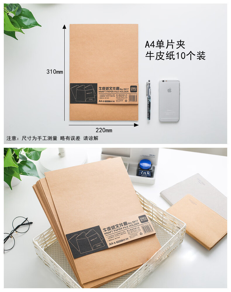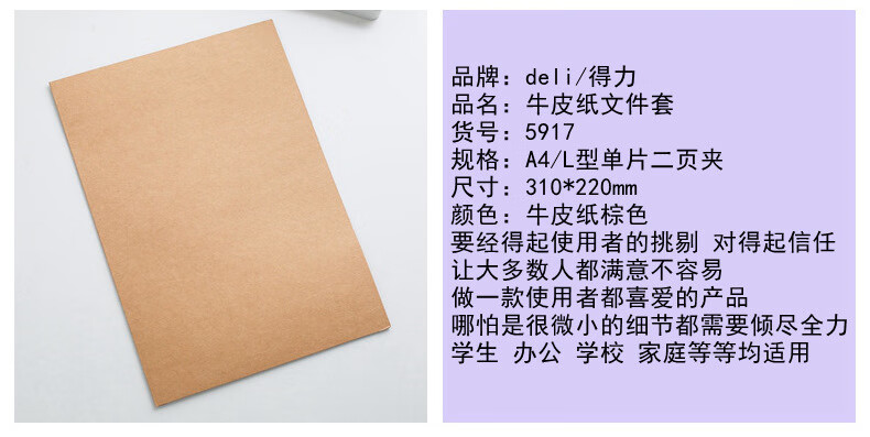 得力 5917 牛皮纸文件套 A4 米黄色 10个装 自营