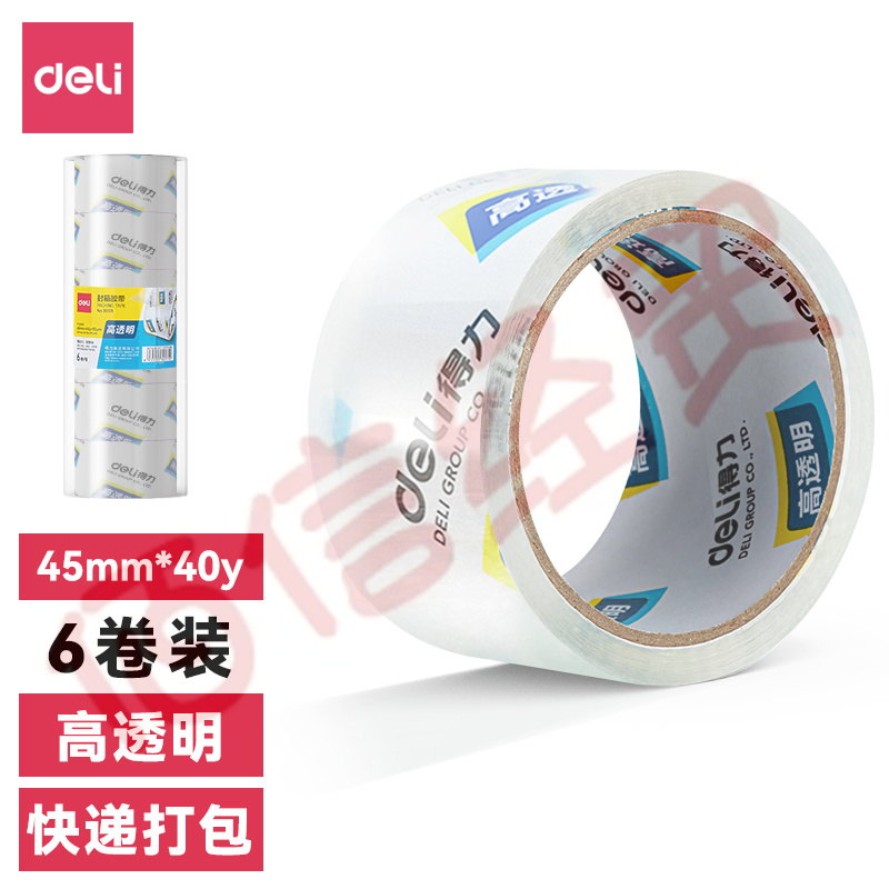 得力(deli) 高品质高透明封箱胶带打包胶带 45mm*40y*50um 6卷/筒 办公用品 30171 自营