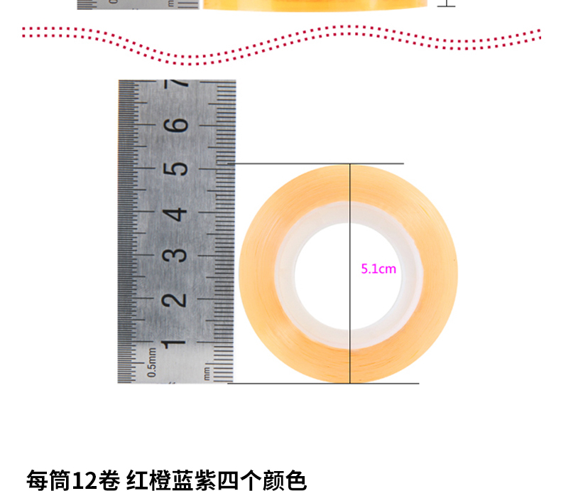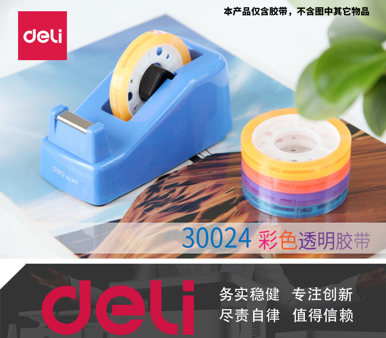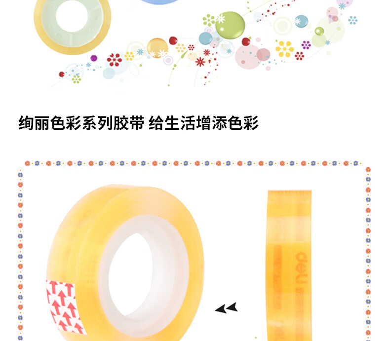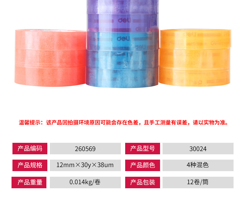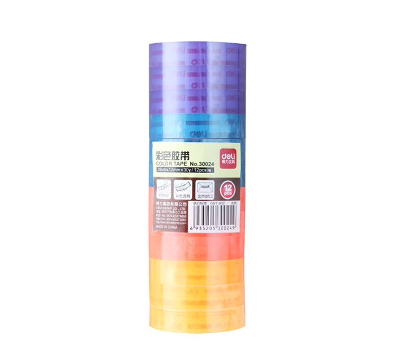 得力(deli) 彩色胶带 小卷文具透明窄胶布 宽12mm长27.4m 12卷装30024 260569 自营