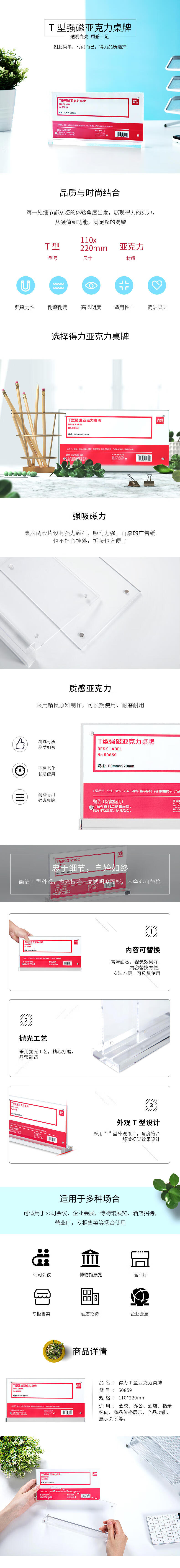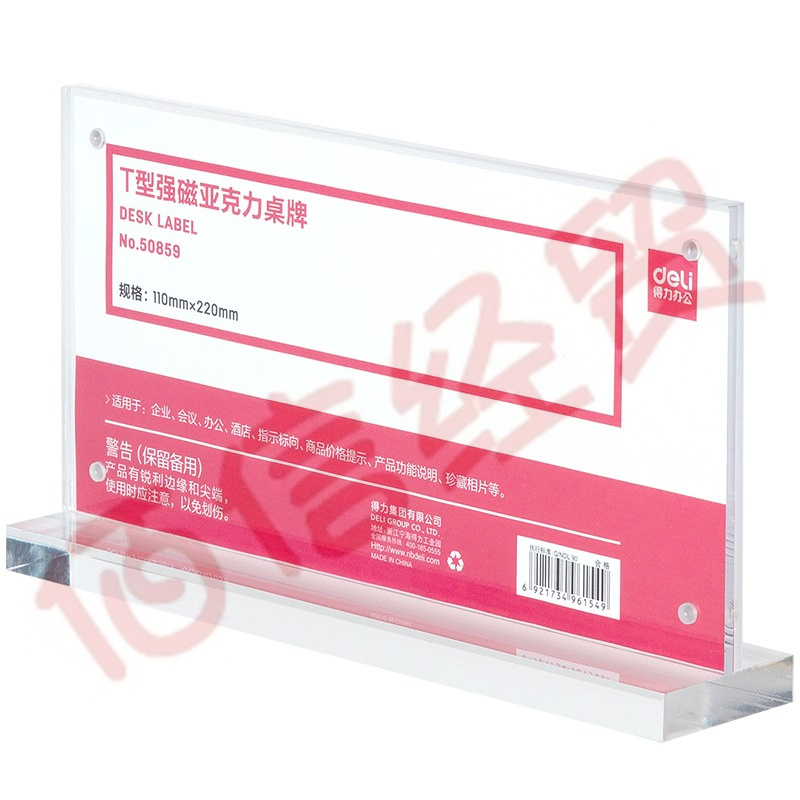 得力(deli)50859T型强磁亚克力桌牌 /桌牌架/台卡 单面透明 办公用品 110*220mm (透明)*24个 自营