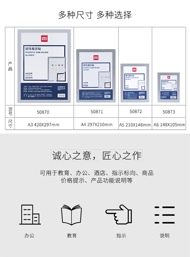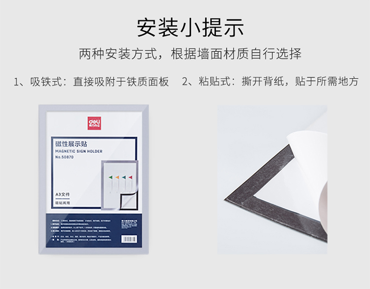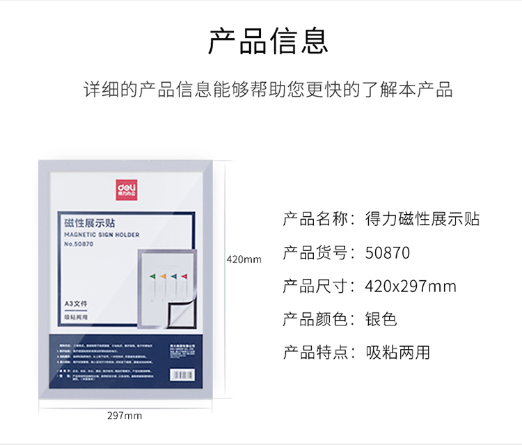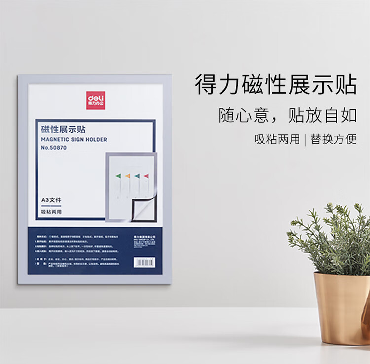得力(deli)50870 A3磁性展示贴 营业执照正本保护套 公告栏通知贴纸 银色 自营