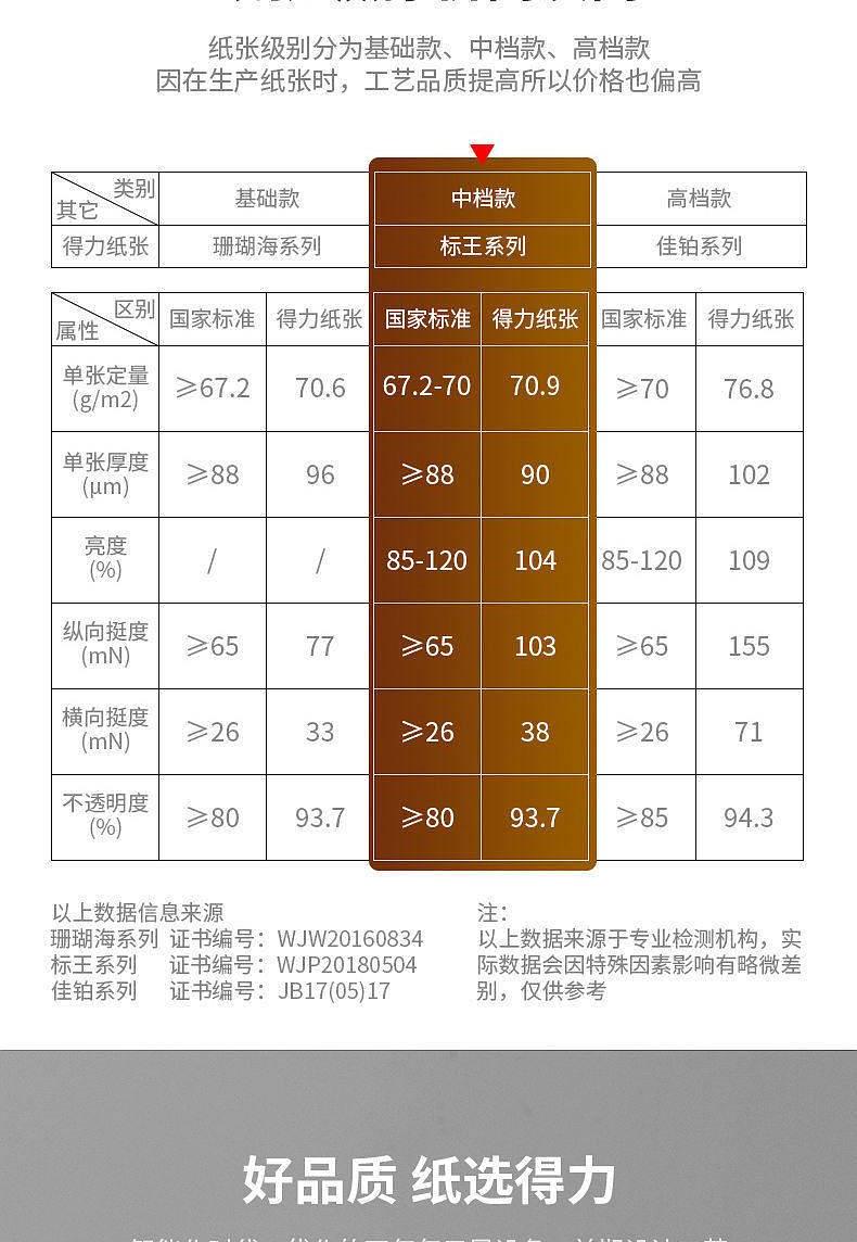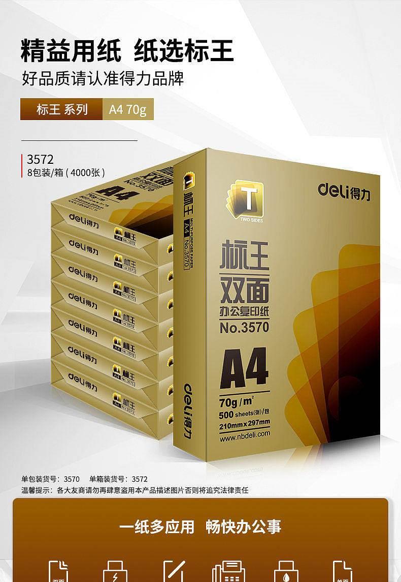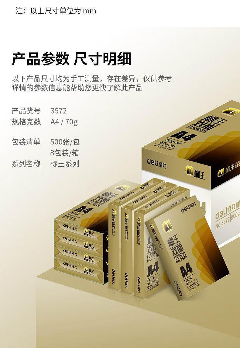 得力 3572 标王双面复印纸 A4/70g/8包/箱 口碑优选复印纸 高性价比复印纸 行业热销复印纸 自营