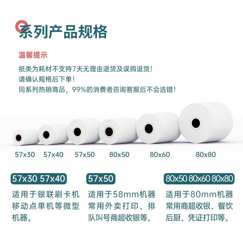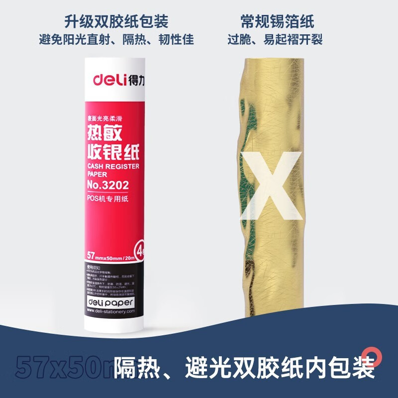 得力3204莱茵河热敏收银纸80*58mm餐饮外卖收银机打印纸 超市收银小票纸 50卷(28米/卷)单卷足米 自营