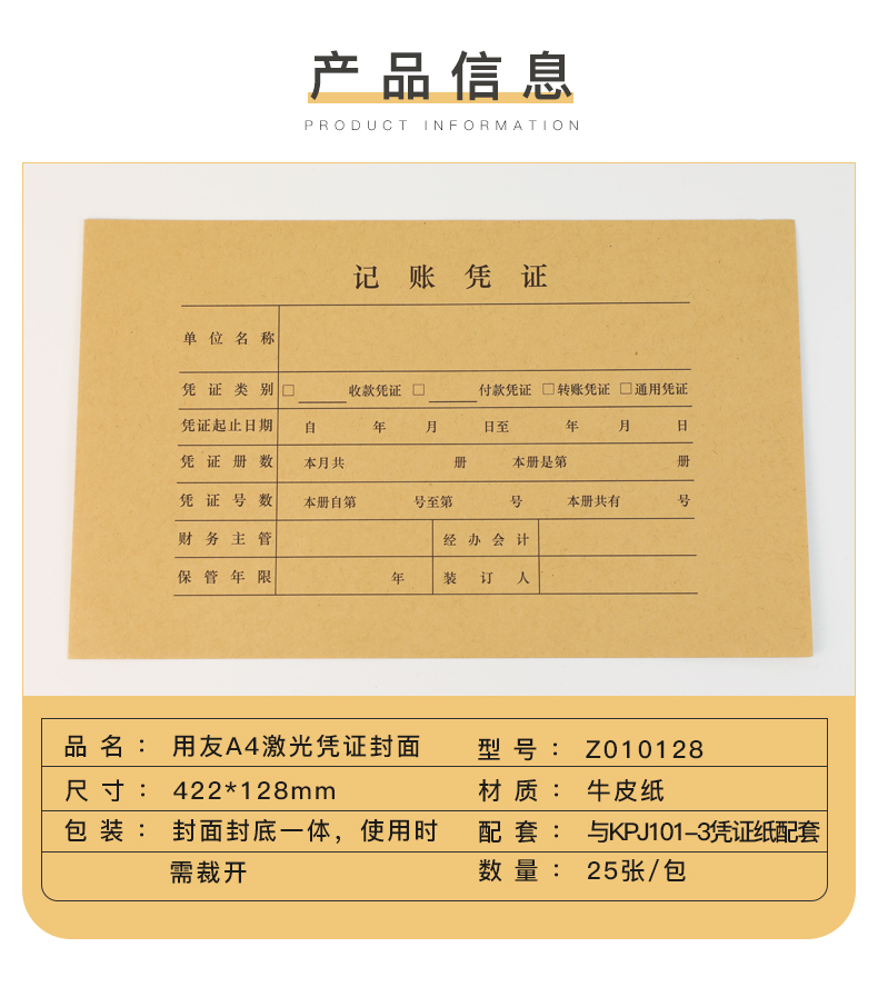 A4激光凭证封面(KPJ101版)Z010128 25套/包 20包/箱 422*128--整箱售--单包价格 自营