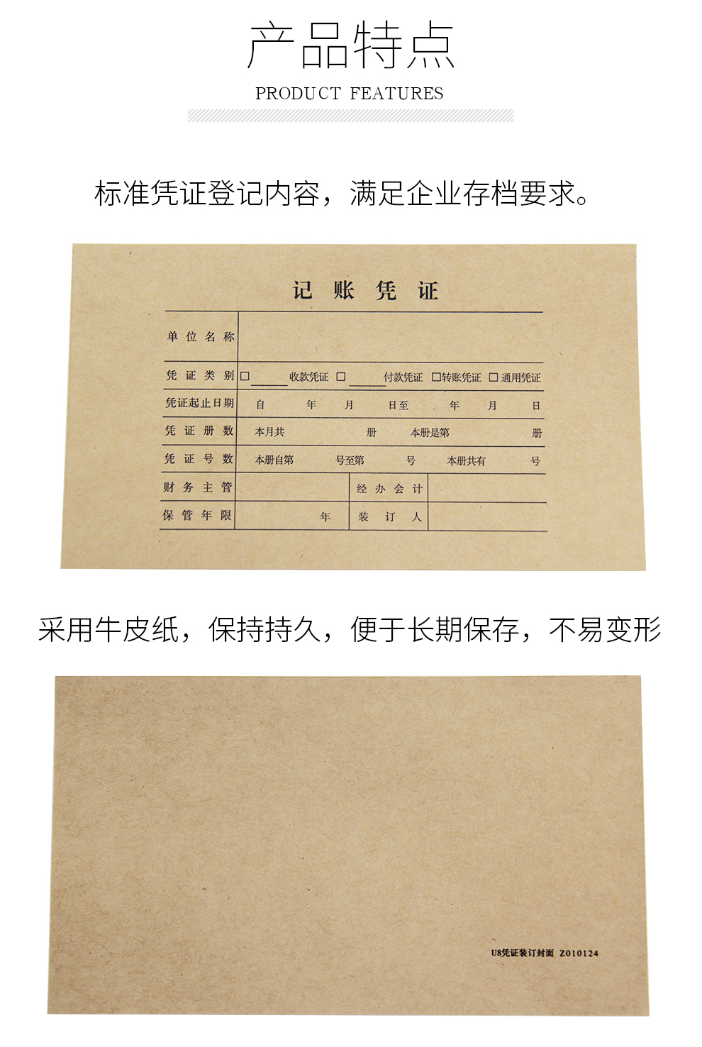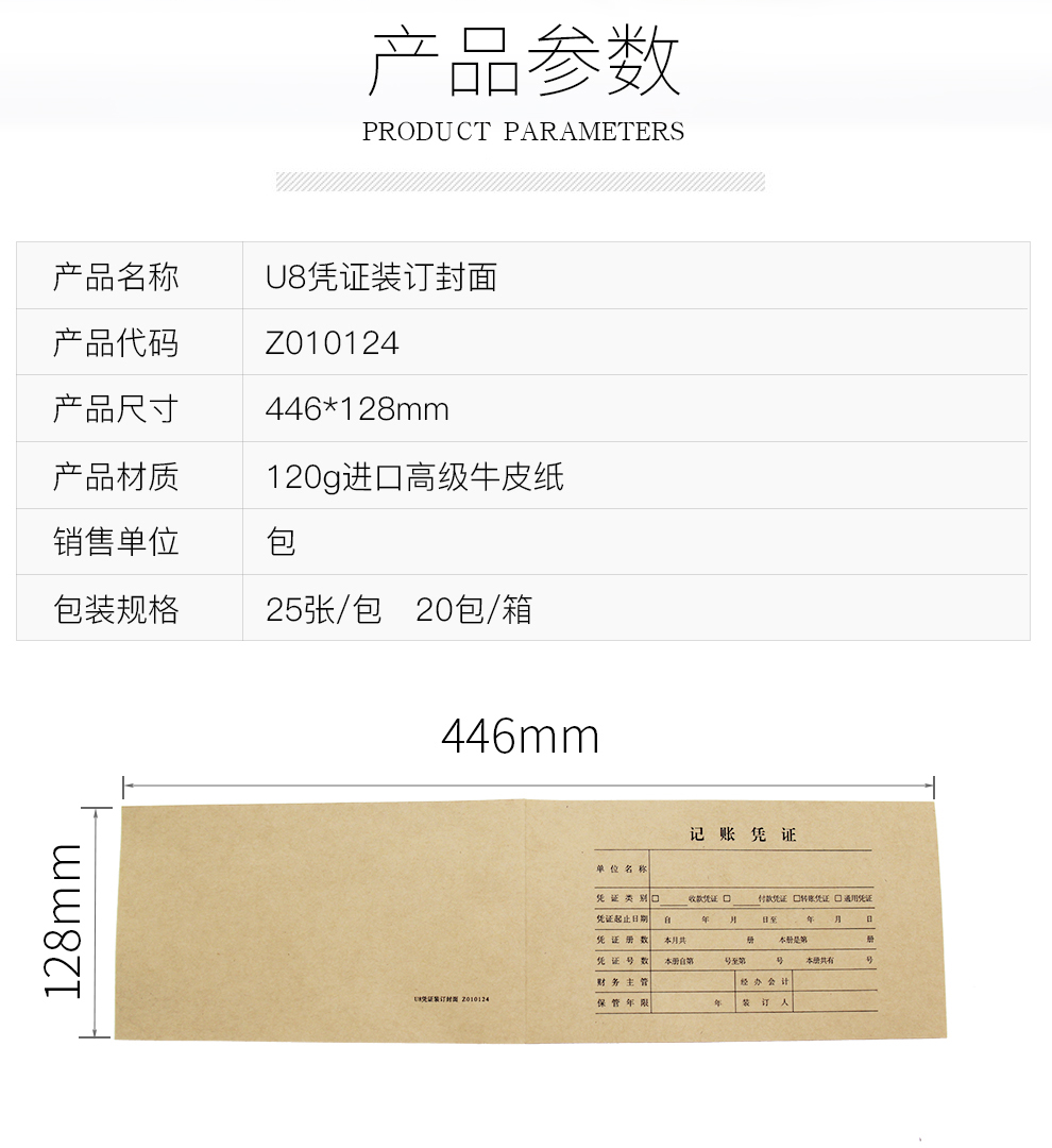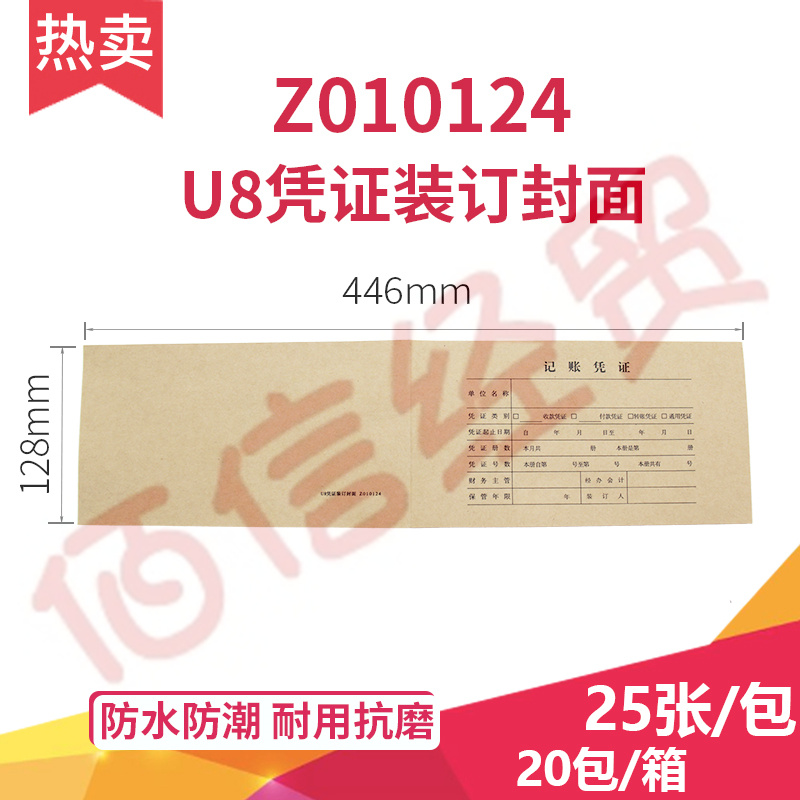 U8凭证装订封面Z010124(446mm*128mm) 25张/包 20包/箱 --整箱售--单包价 自营