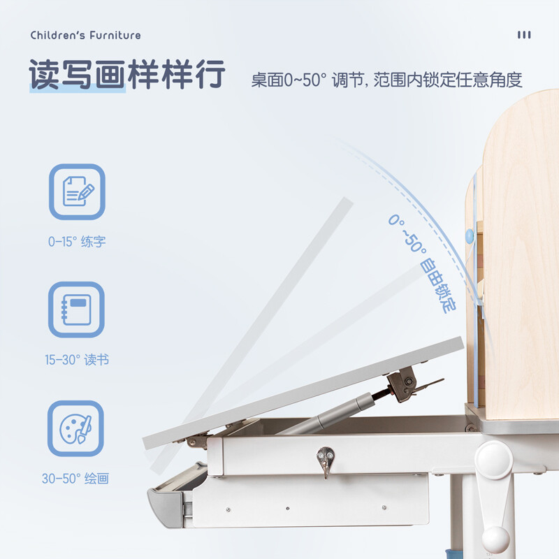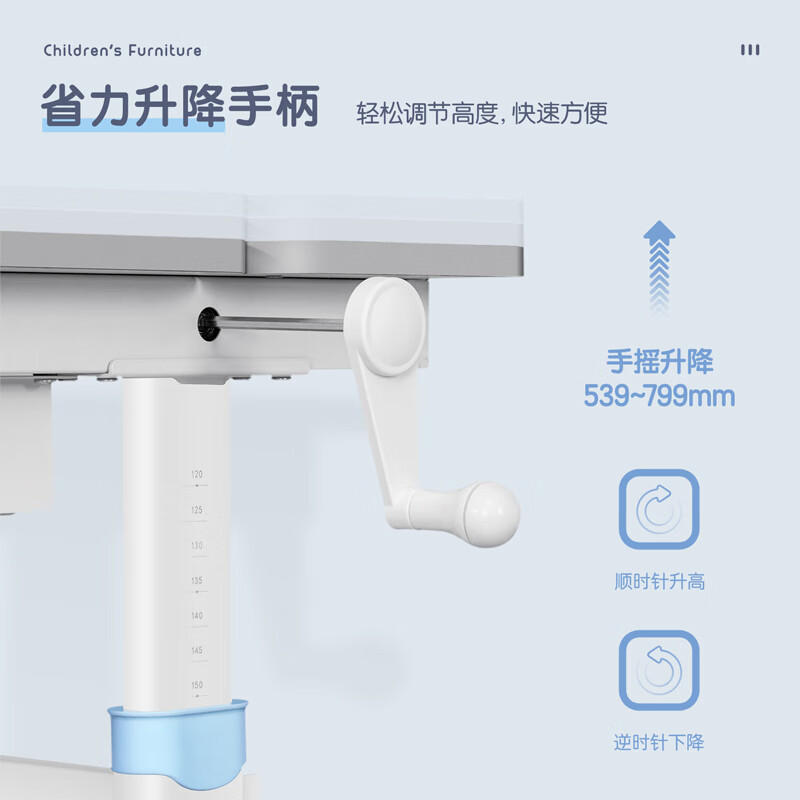 得力 deli 儿童书桌椅套装 带书架写字桌 可升降学习桌椅 112CM 87012 蓝色 自营