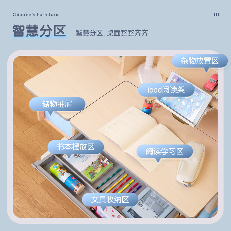 得力 deli 儿童书桌椅套装 带书架写字桌 可升降学习桌椅112CM 87012 粉色 自营