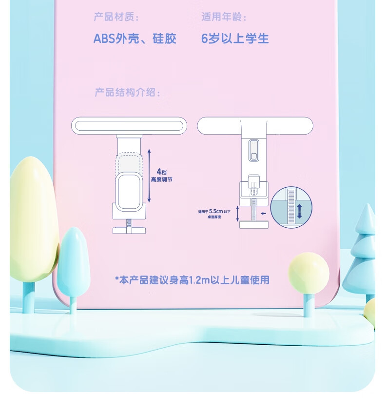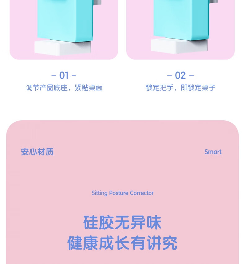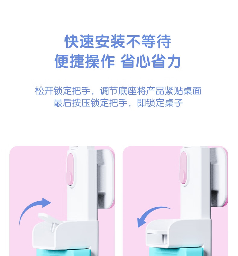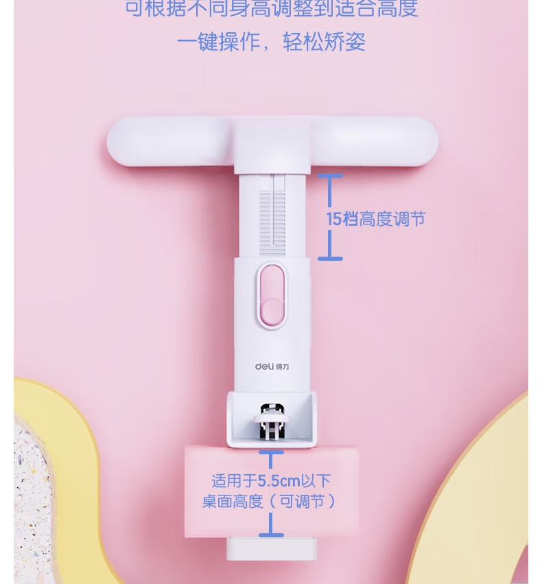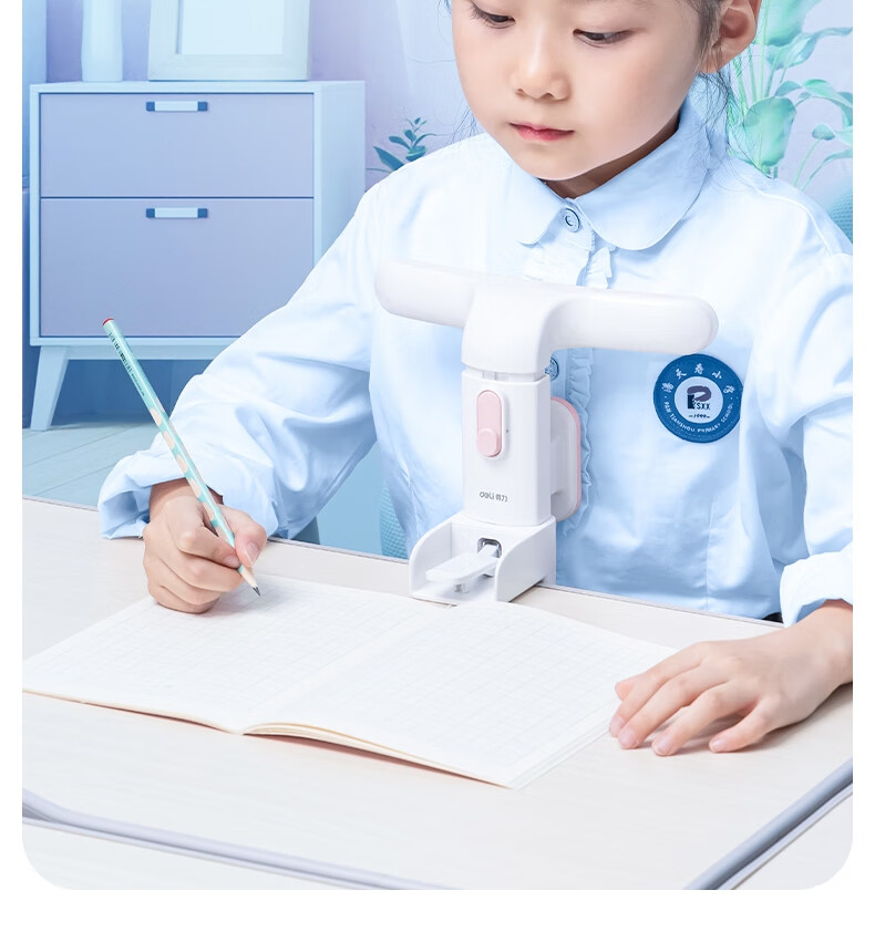 得力(deli)坐姿矫正器 学生写字矫正器 儿童纠正写字姿势学习预防低头写作业正姿支架 一键夹桌款74353粉 自营