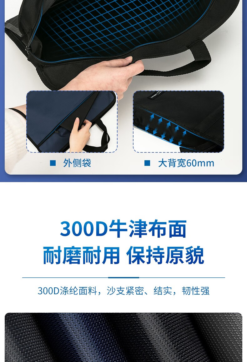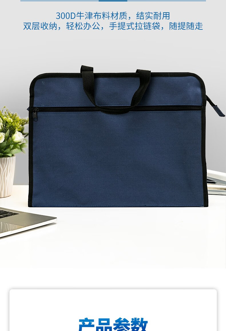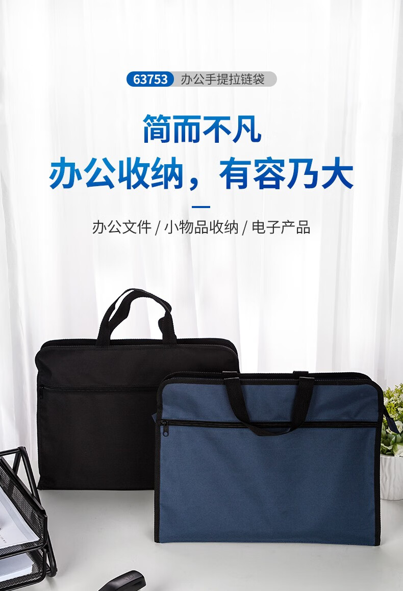 得力手提拉链袋公文包电脑收纳包袋学生用手提袋资料袋商务拉链袋男女办公加厚会议电脑包简约素版 蓝色 63753 自营