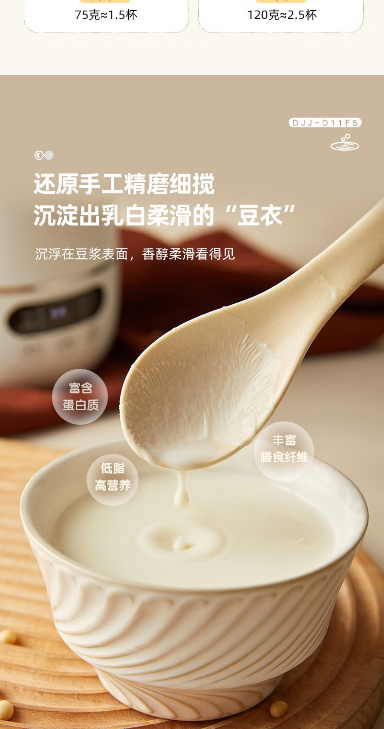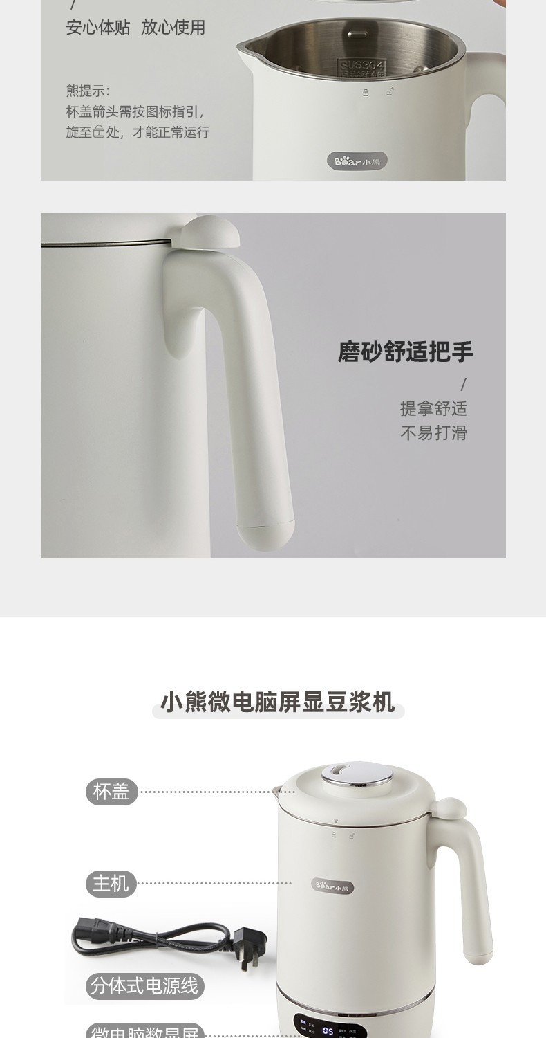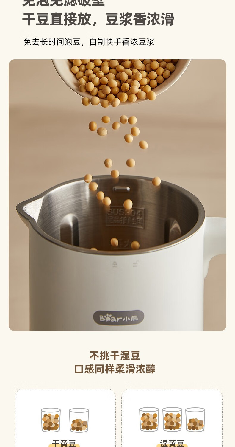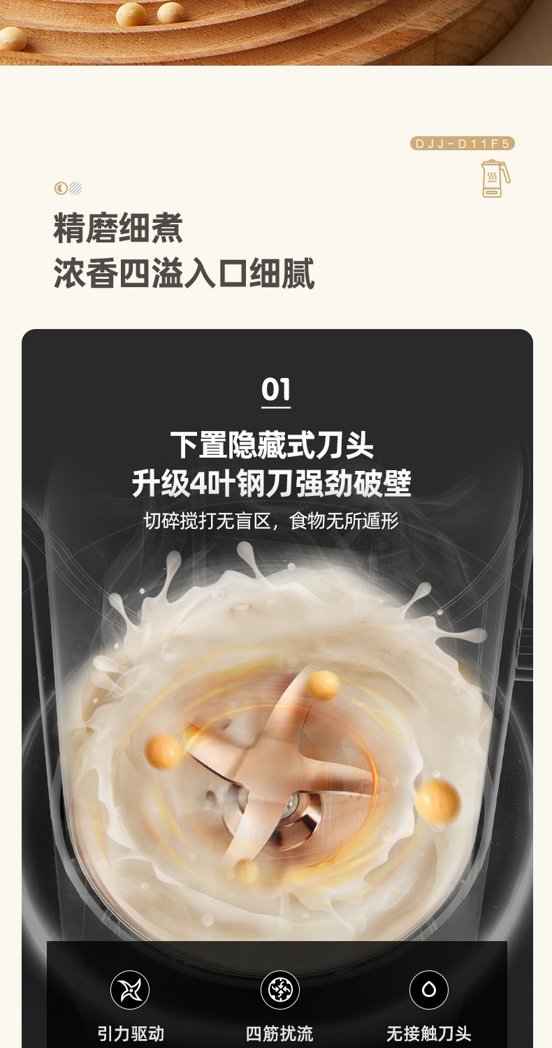 小熊(Bear) 豆浆机家用破壁免泡免滤密闭熬煮智能预约304级不锈钢多功能DJJ-D11F5 微电脑触控丨精磨慢煮