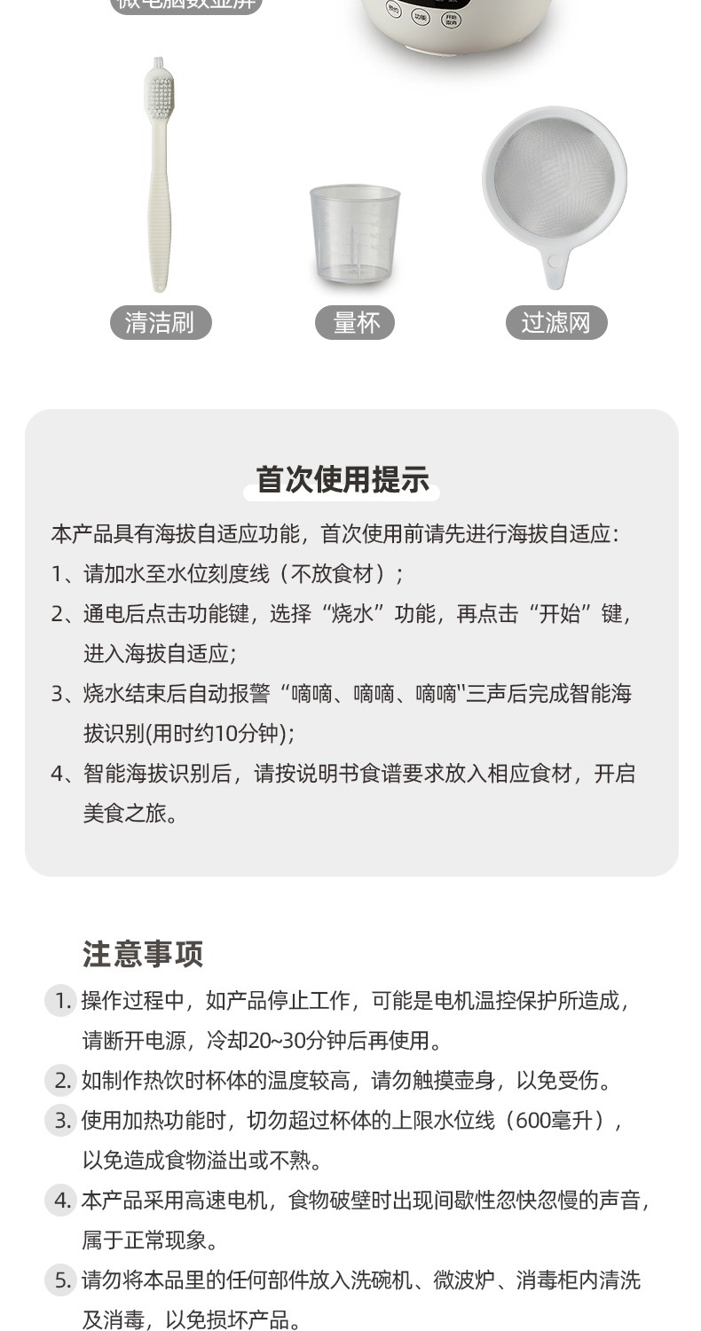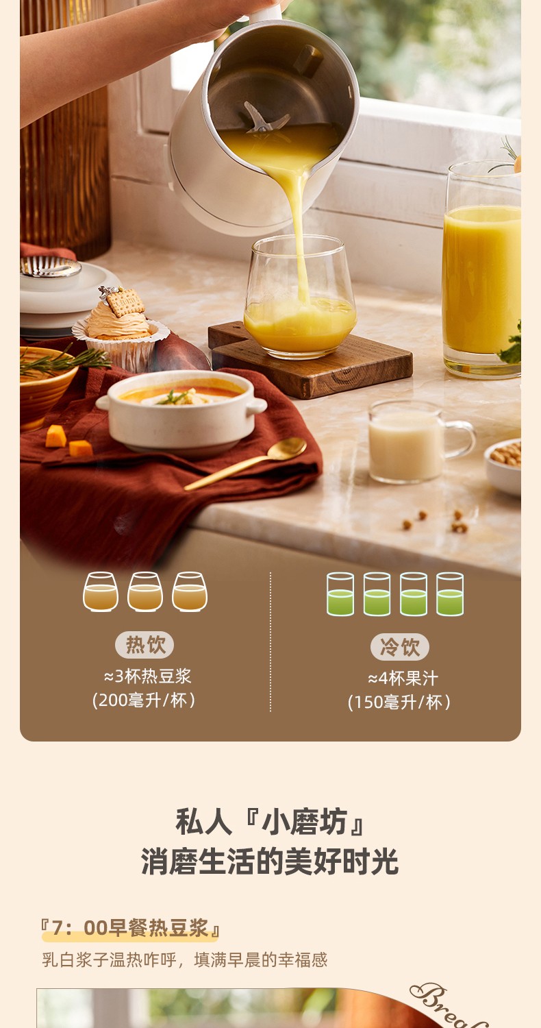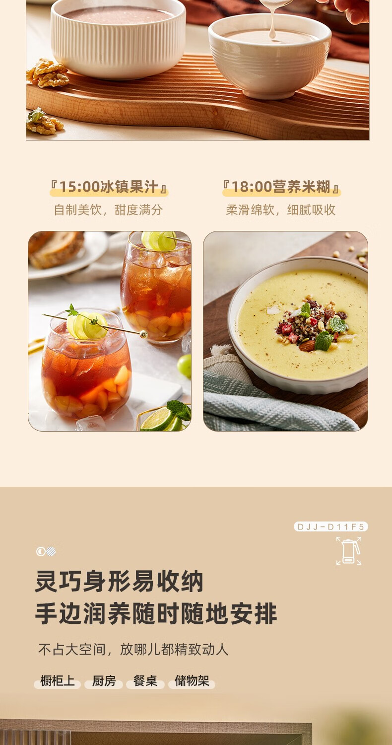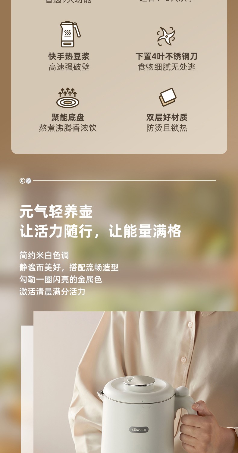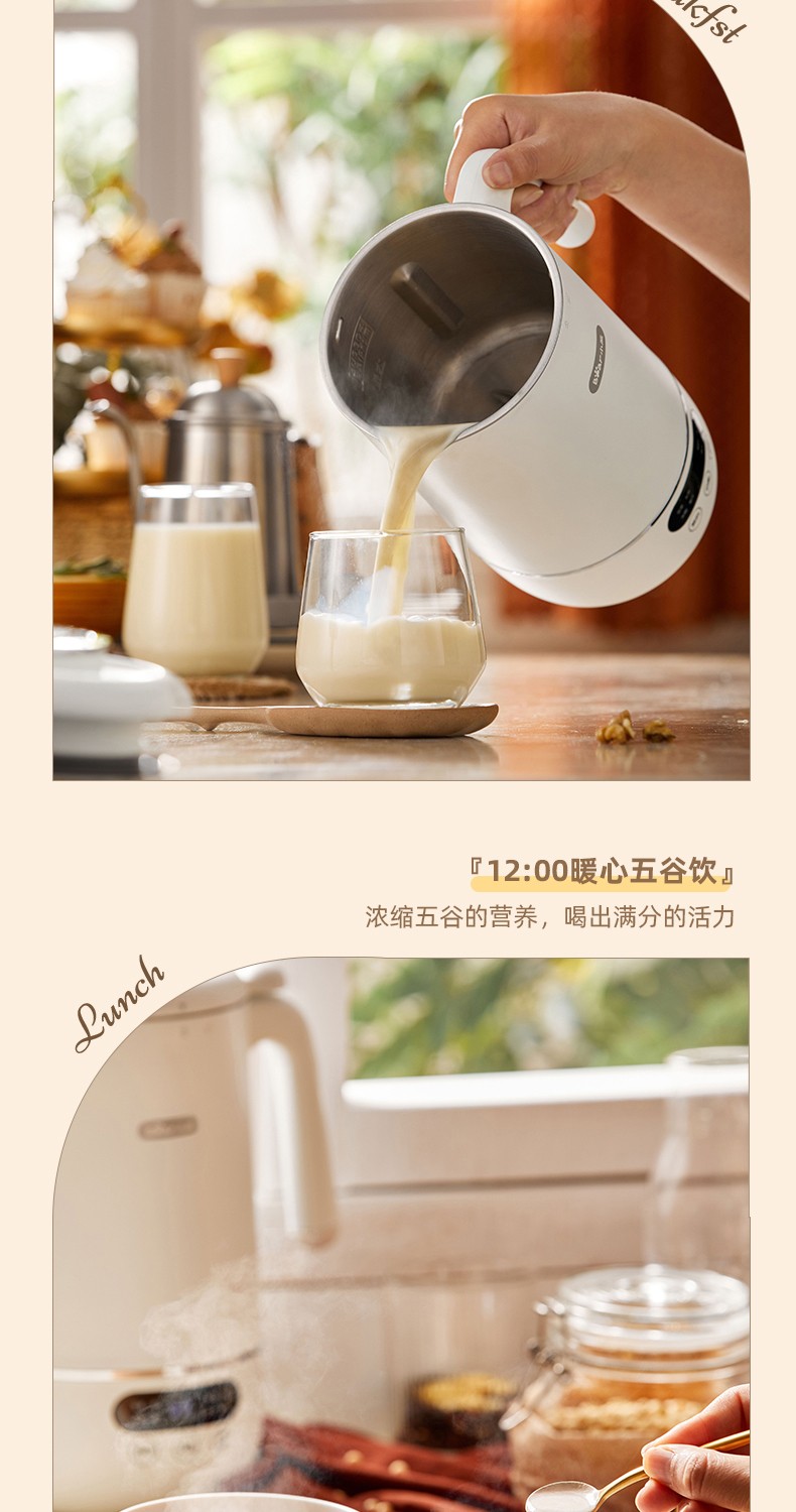 小熊(Bear) 豆浆机家用破壁免泡免滤密闭熬煮智能预约304级不锈钢多功能DJJ-D11F5 微电脑触控丨精磨慢煮