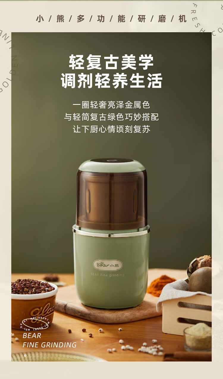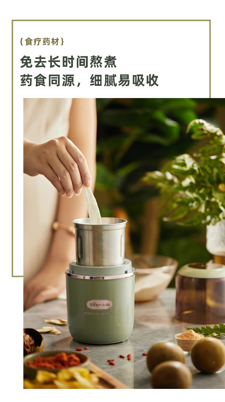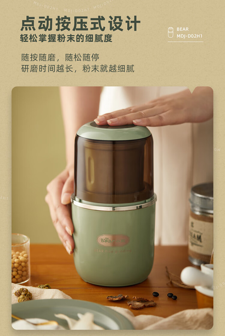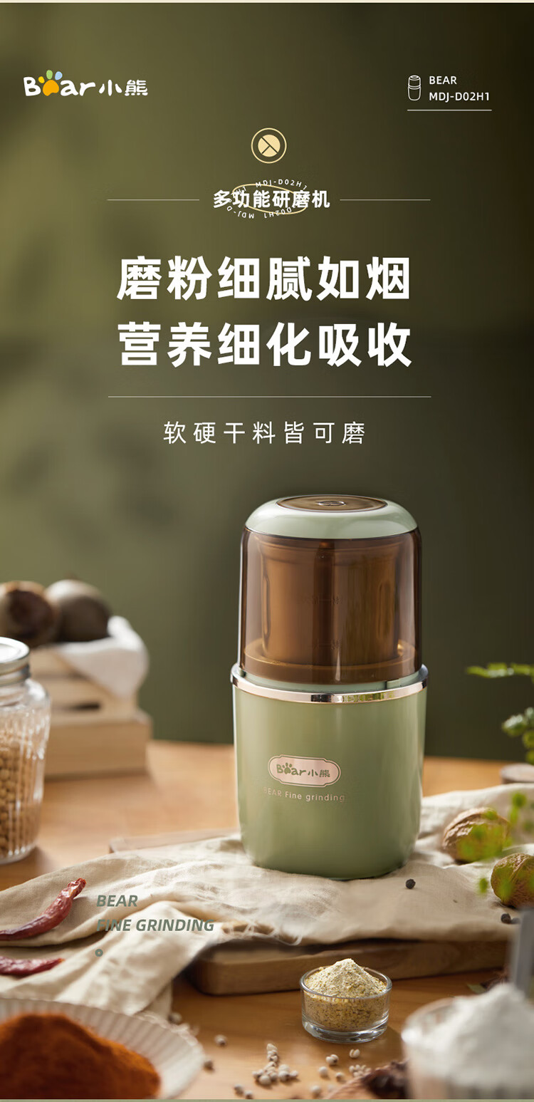 小熊(Bear)研磨机 家用磨粉机 中药粉碎机 五谷杂粮干粉机 药材小型超细打粉机 磨豆机MDJ-D02H1 自营
