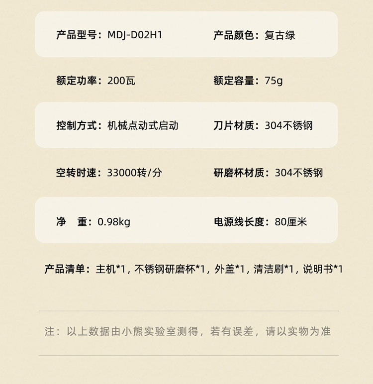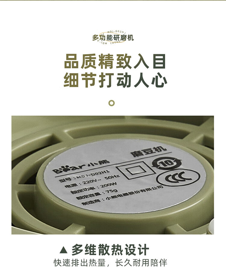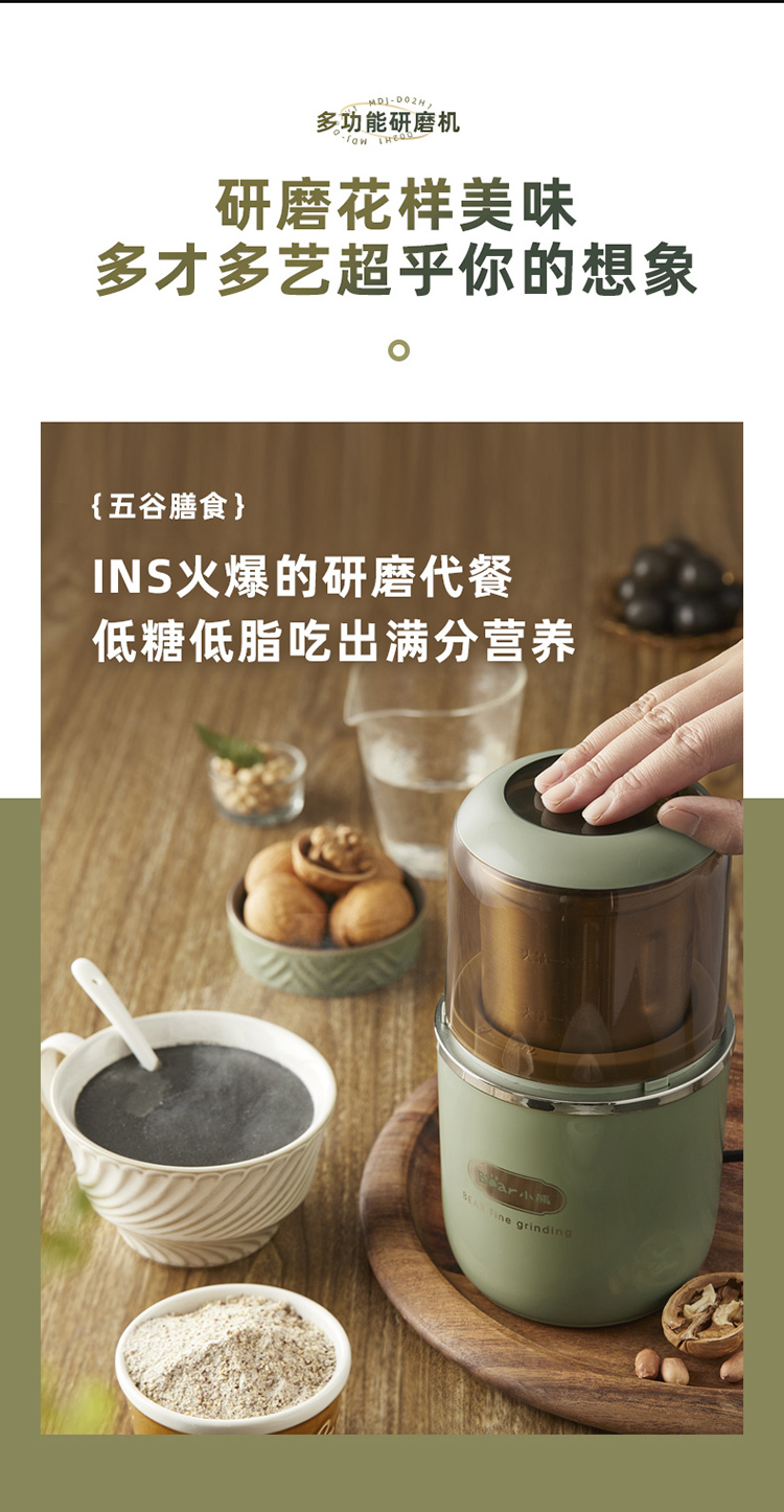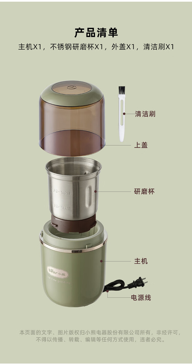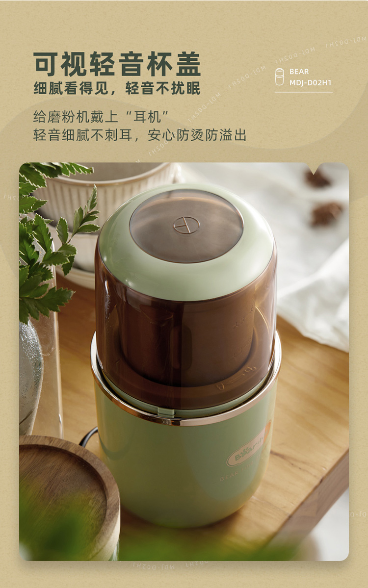 小熊(Bear)研磨机 家用磨粉机 中药粉碎机 五谷杂粮干粉机 药材小型超细打粉机 磨豆机MDJ-D02H1 自营
