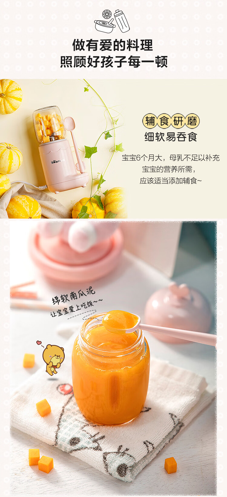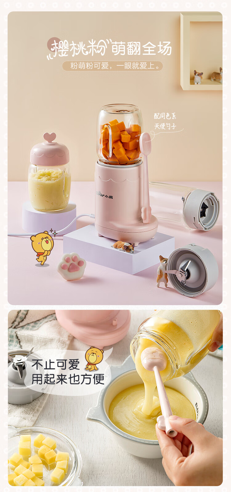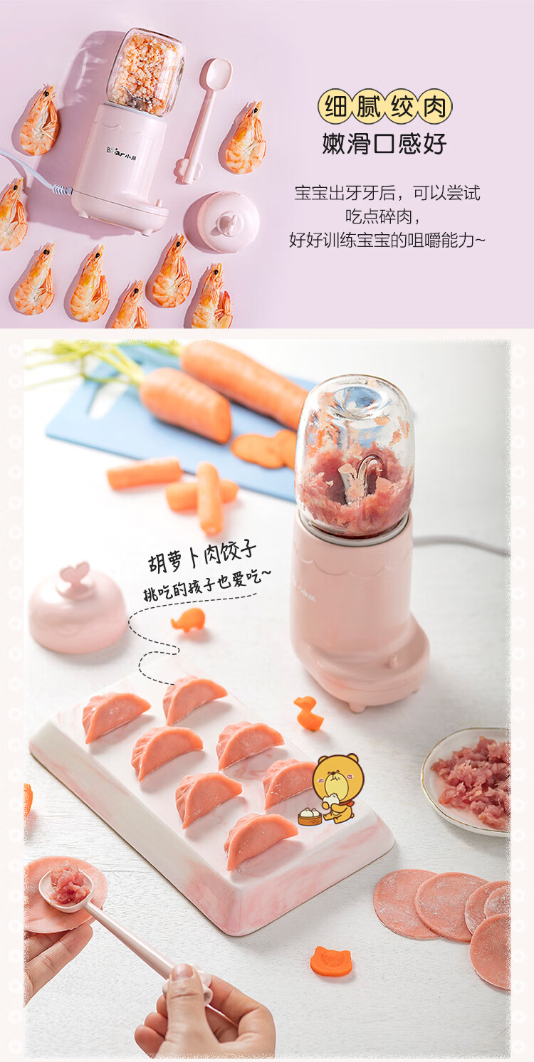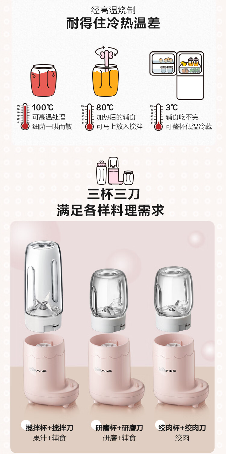 小熊(Bear)料理机婴儿辅食绞肉机家用多功能全自动小型迷你宝宝搅拌机料理棒米糊研磨器 三杯三刀 LLJ-C04J1 自营