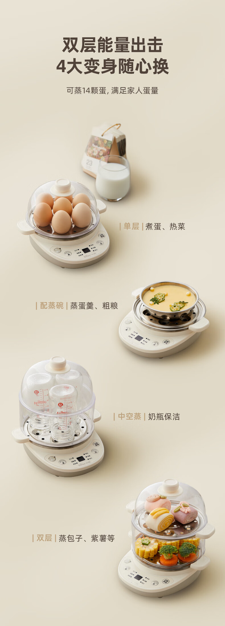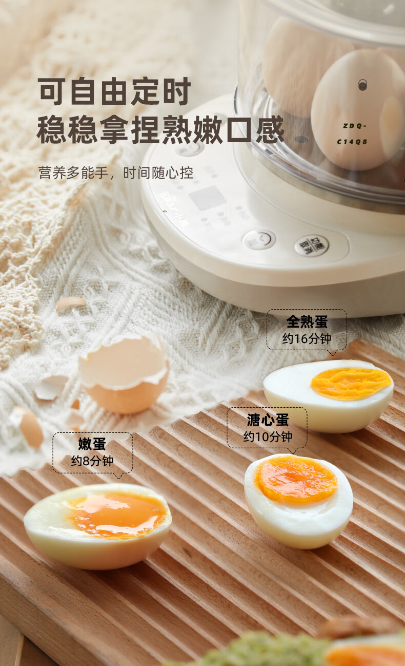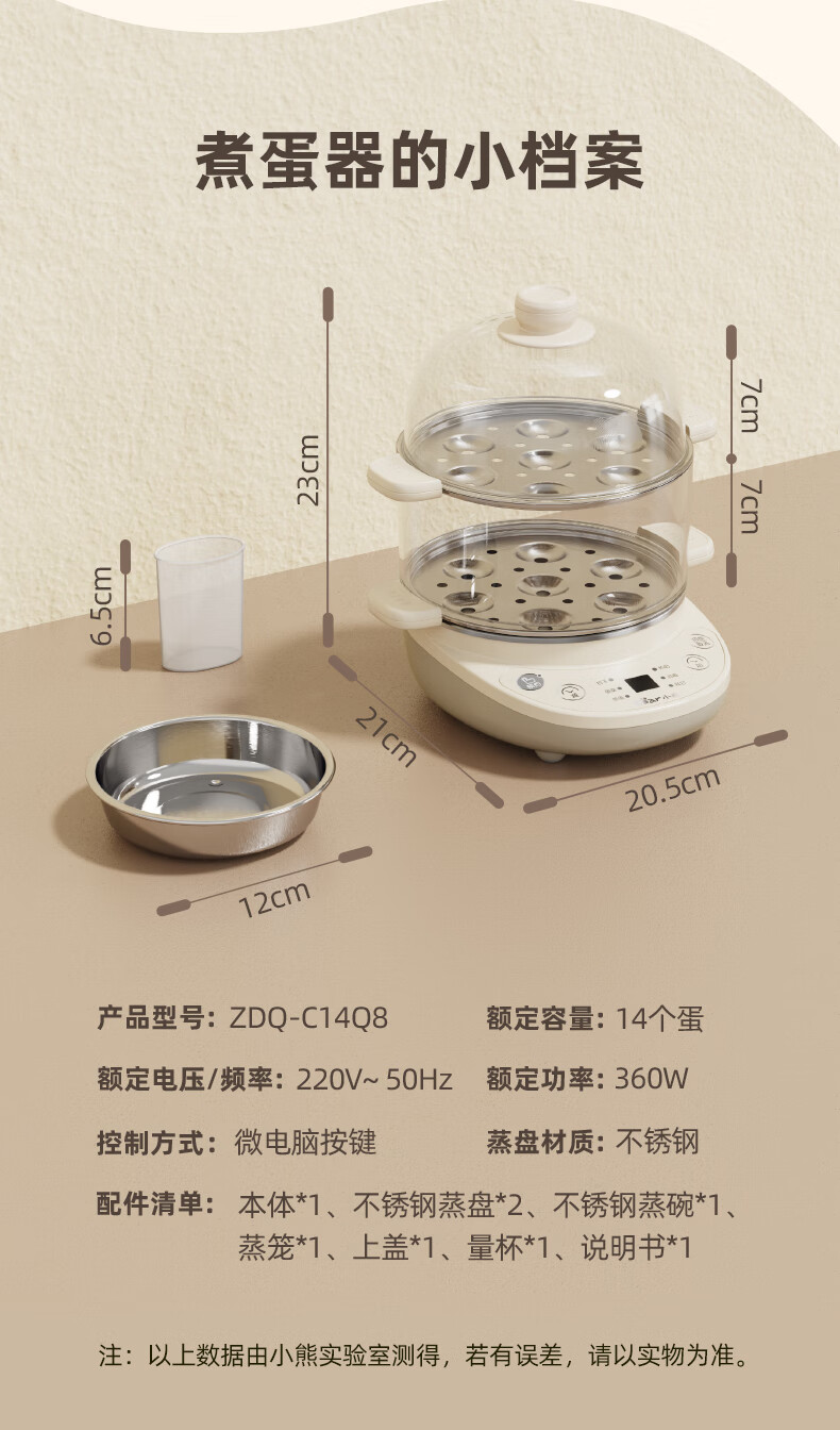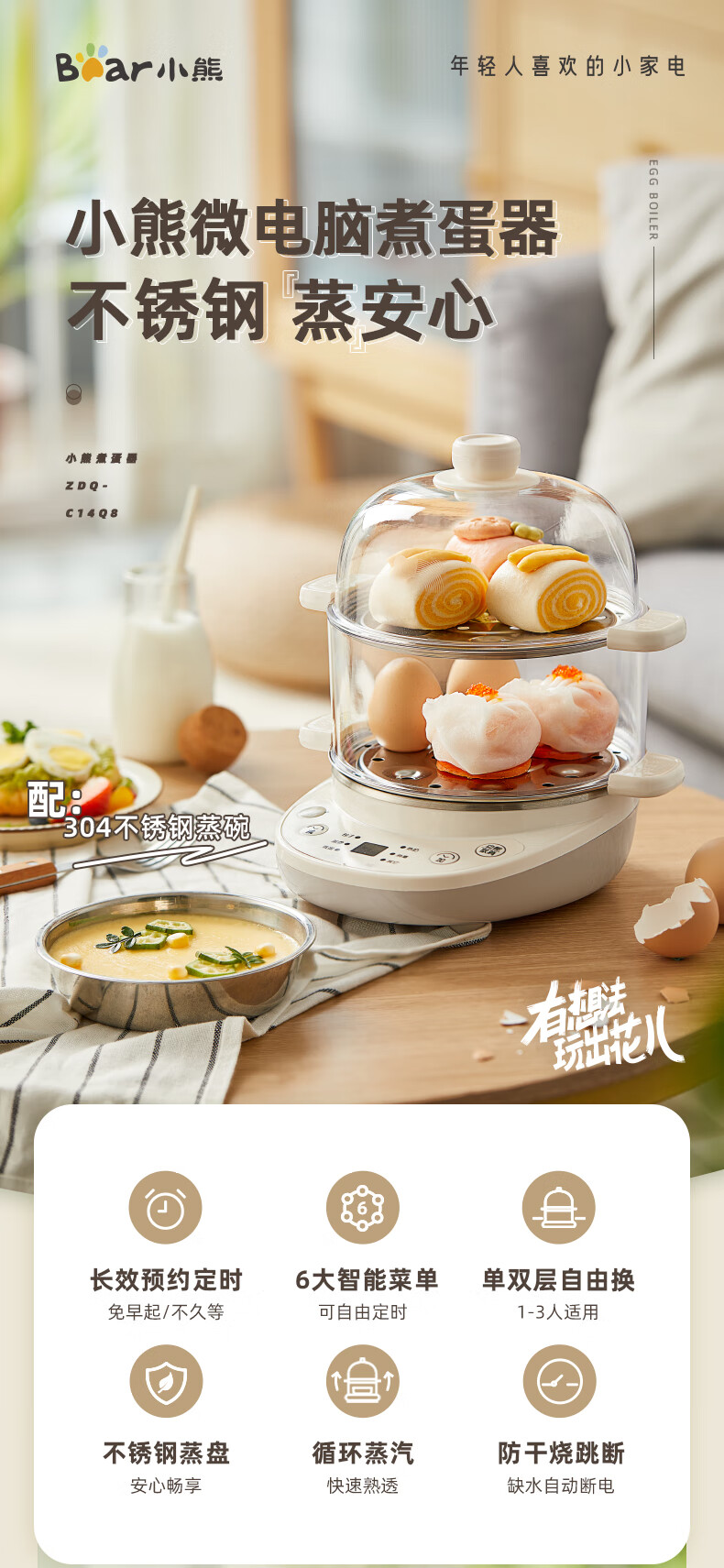 小熊(Bear) 煮蛋器双层家用多功能预约定时煎蛋器蒸蛋器 煮蛋神器防干烧 可煮14个鸡蛋 预约定时+底盘煎烙ZDQ-B14V2 自营