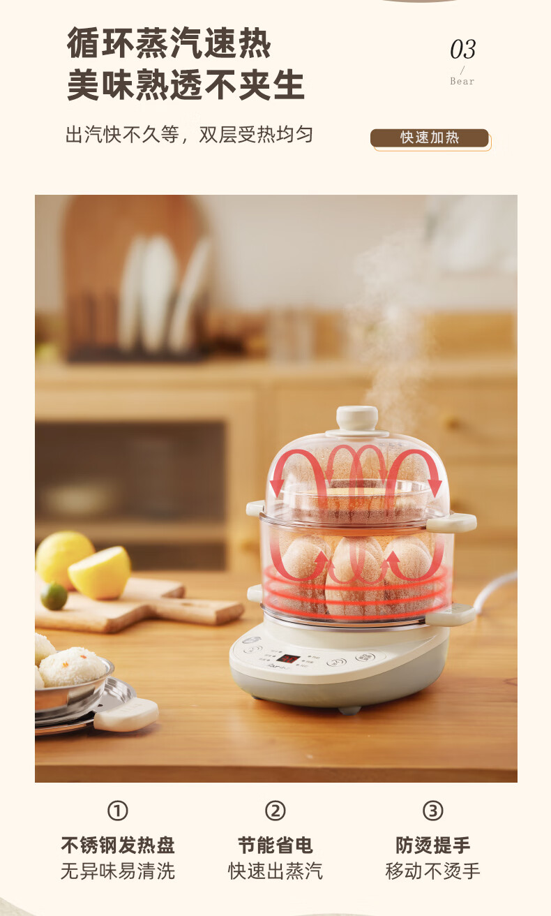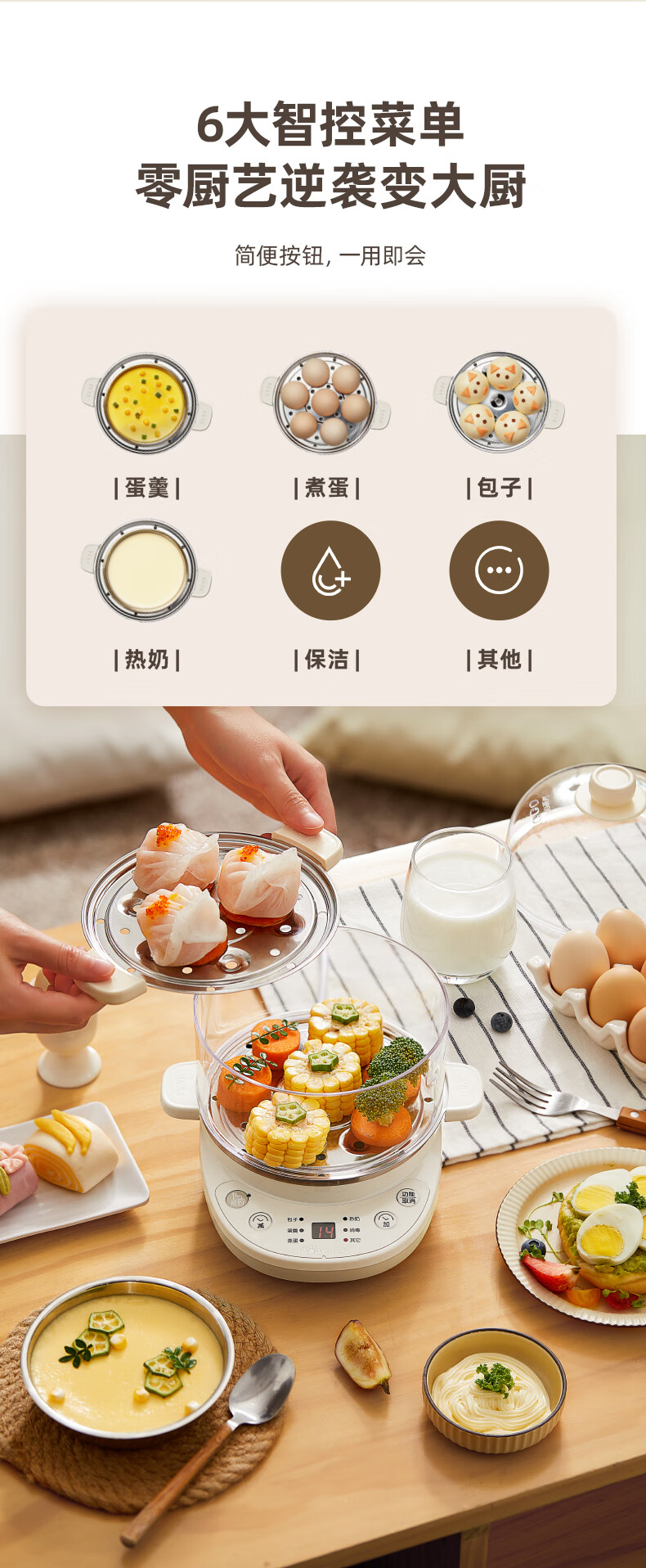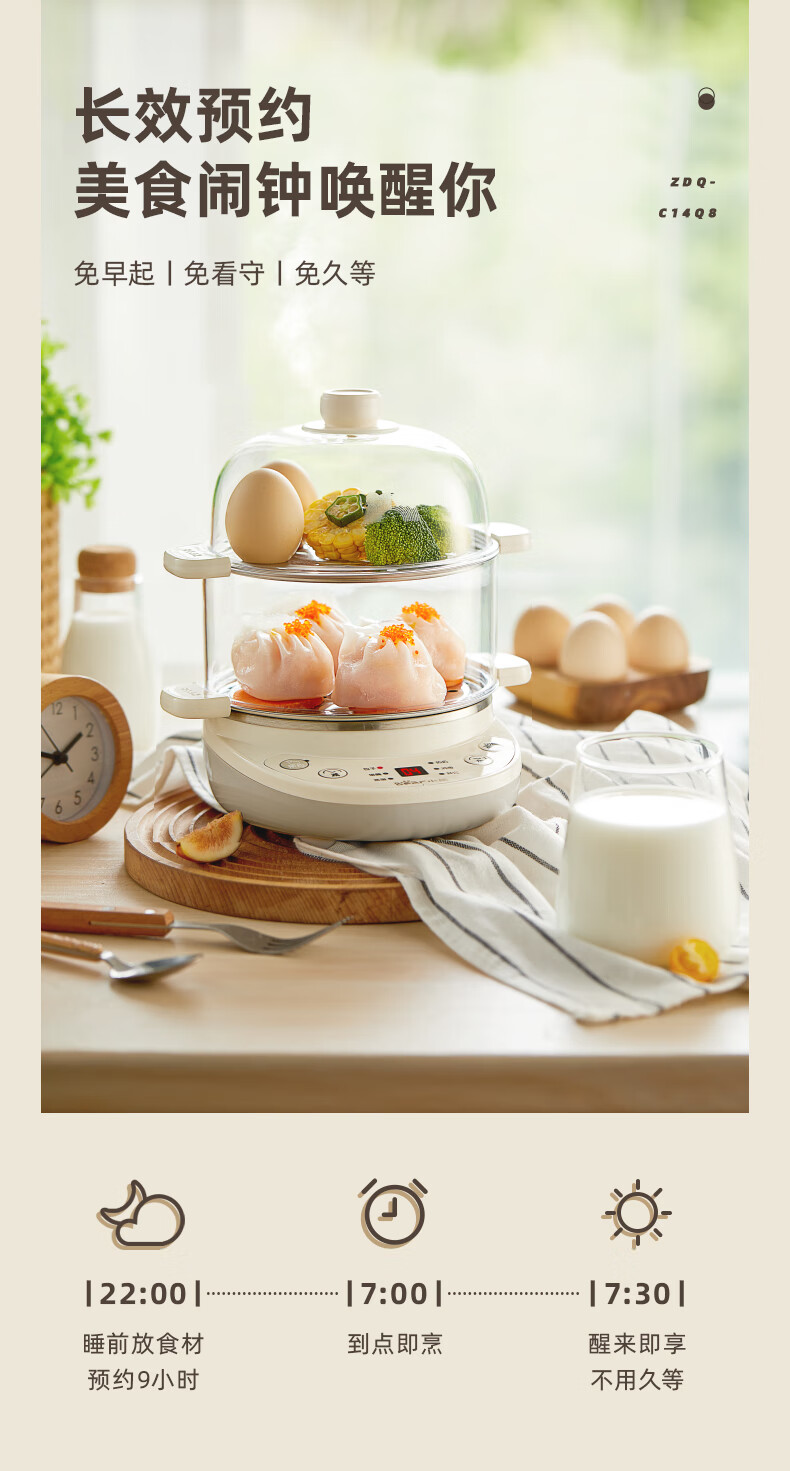 小熊(Bear) 煮蛋器双层家用多功能预约定时煎蛋器蒸蛋器 煮蛋神器防干烧 可煮14个鸡蛋 预约定时+底盘煎烙ZDQ-B14V2 自营