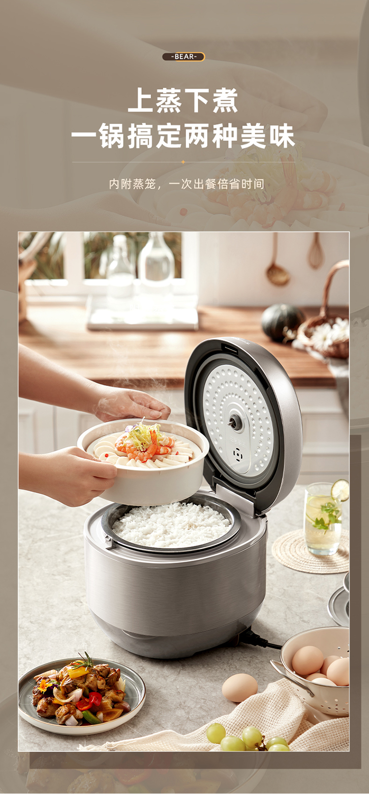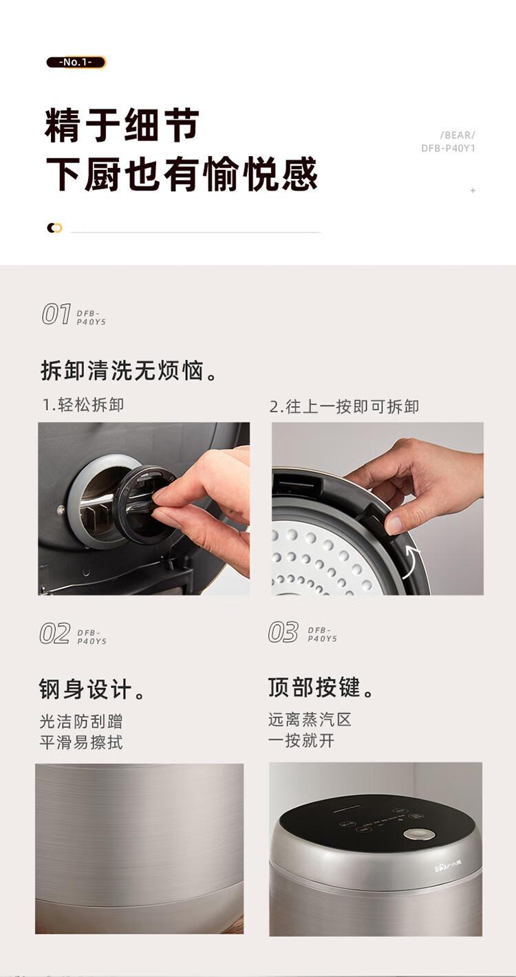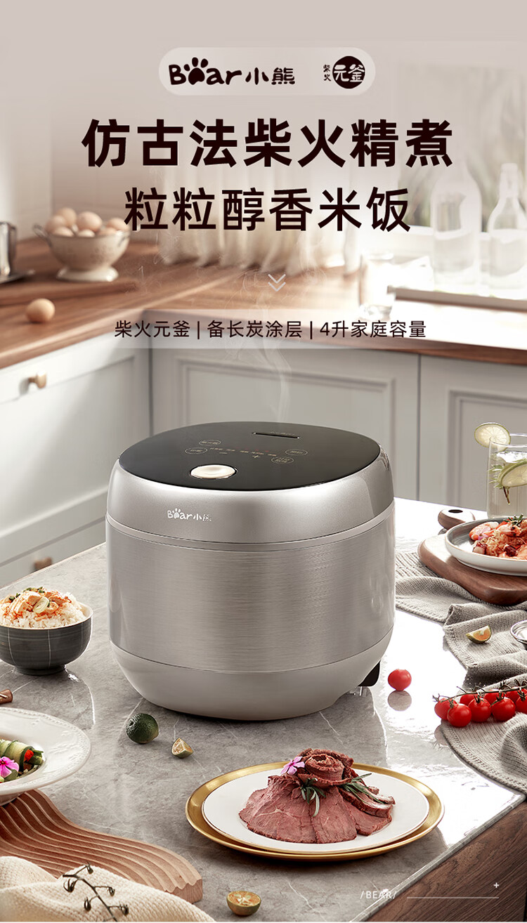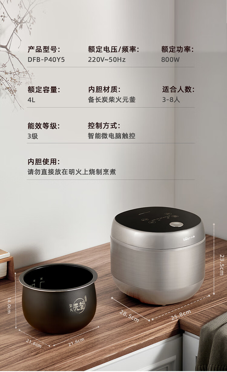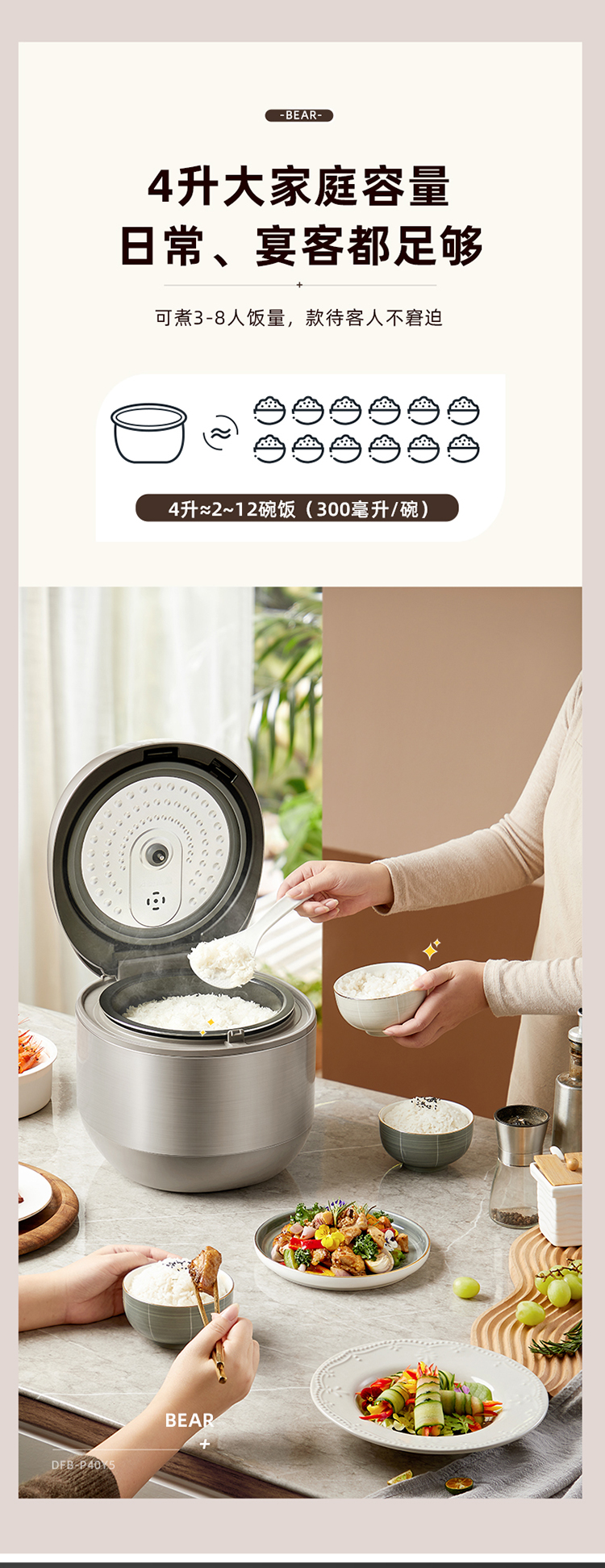 小熊(Bear)电饭煲 电饭锅4升大容量 多功能煮饭锅家用智能2-6人 大功率厚釜内胆饭锅柴火饭 【钢身设计】DFB-P40Y5 4L 自营
