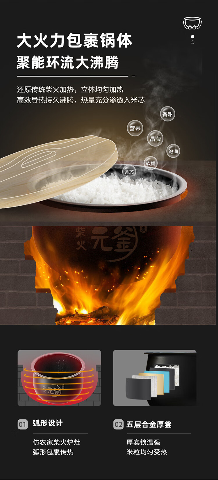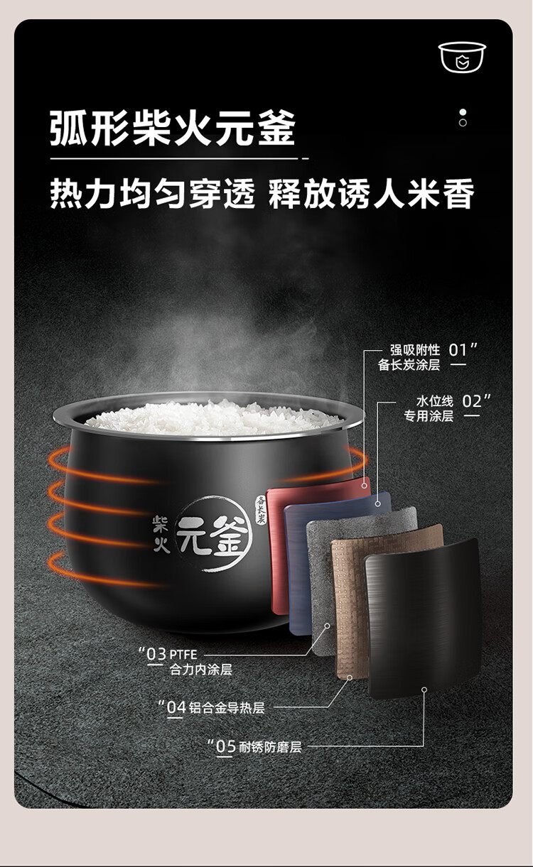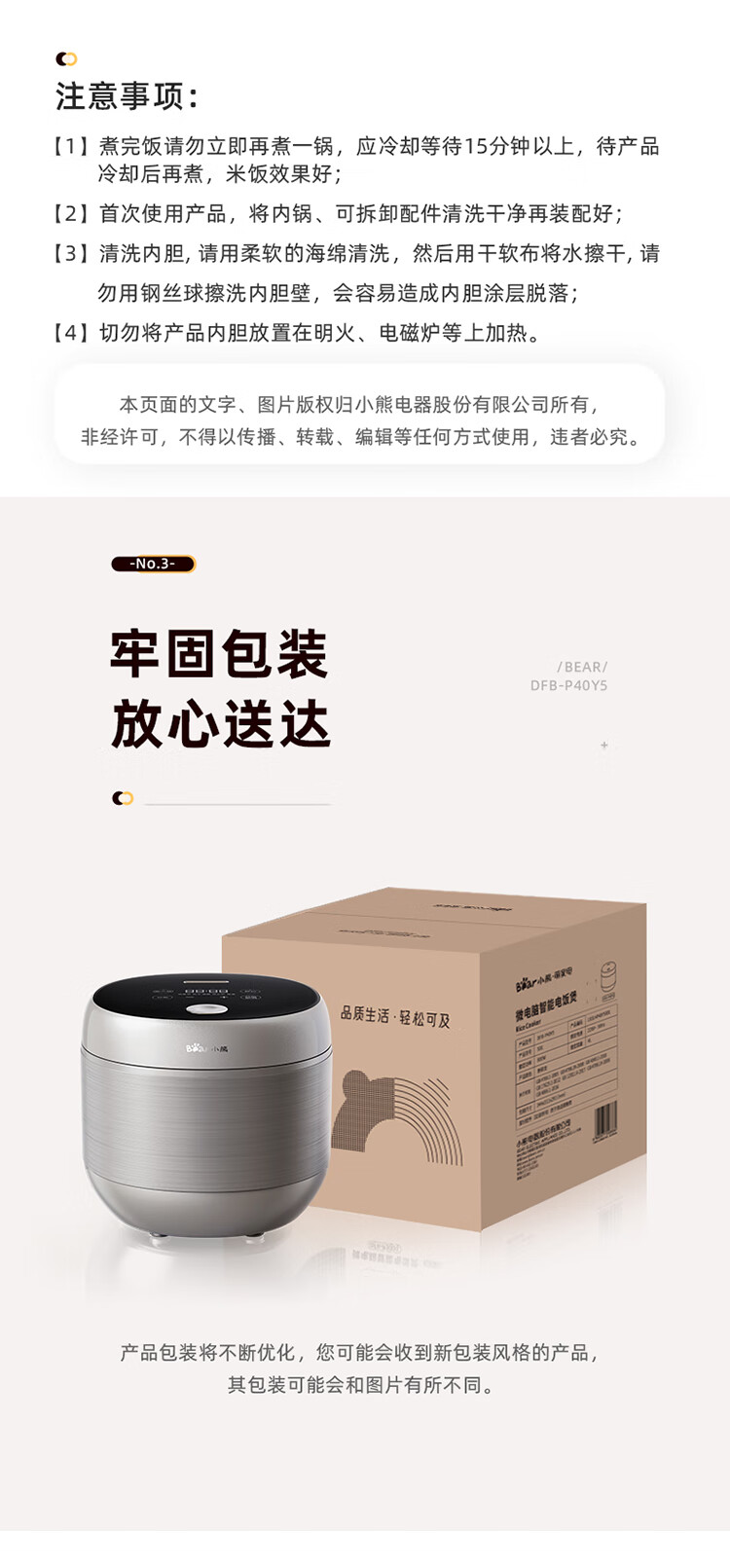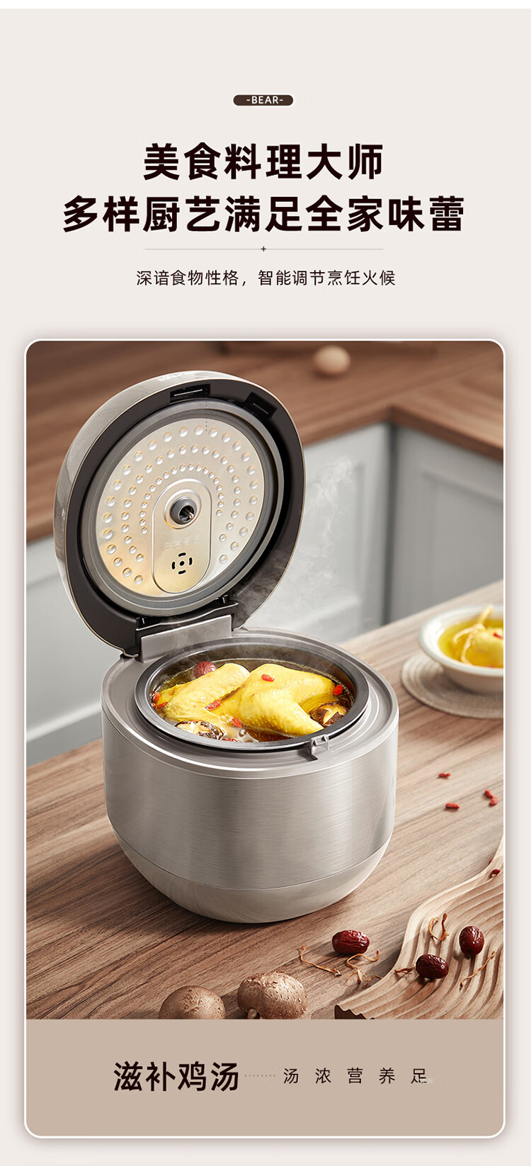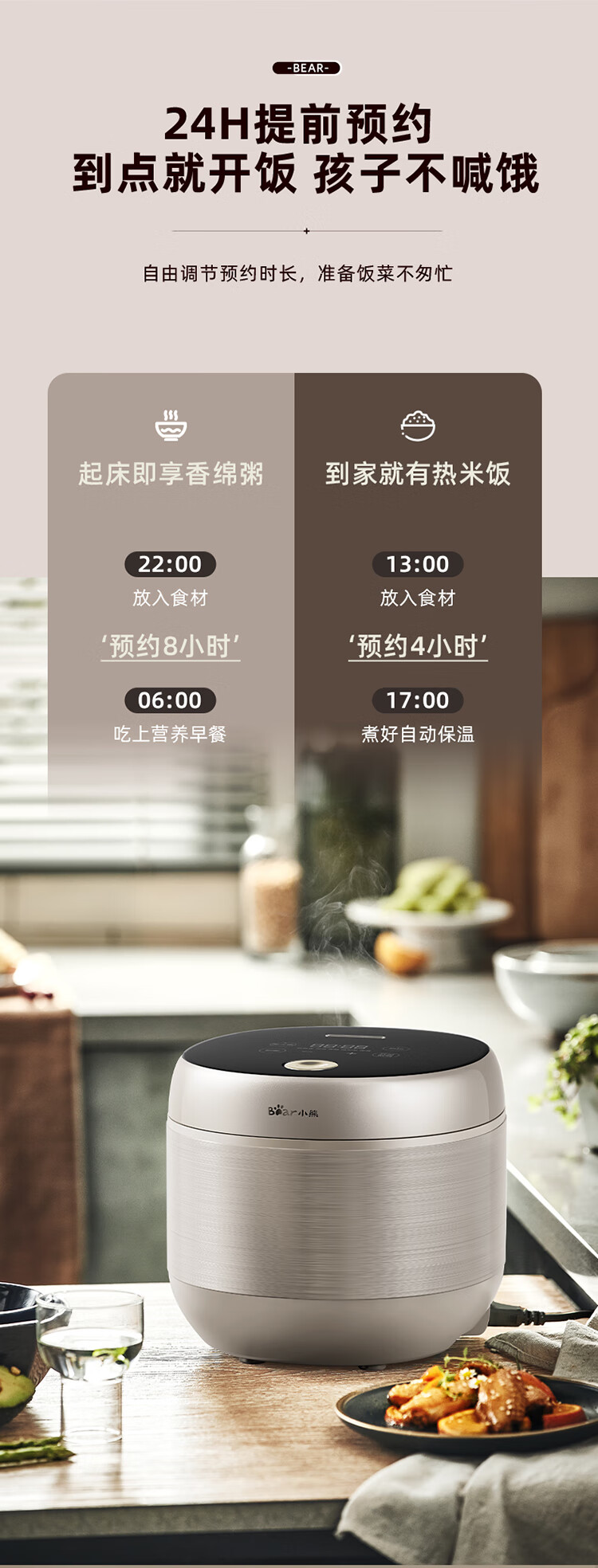 小熊(Bear)电饭煲 电饭锅4升大容量 多功能煮饭锅家用智能2-6人 大功率厚釜内胆饭锅柴火饭 【钢身设计】DFB-P40Y5 4L 自营