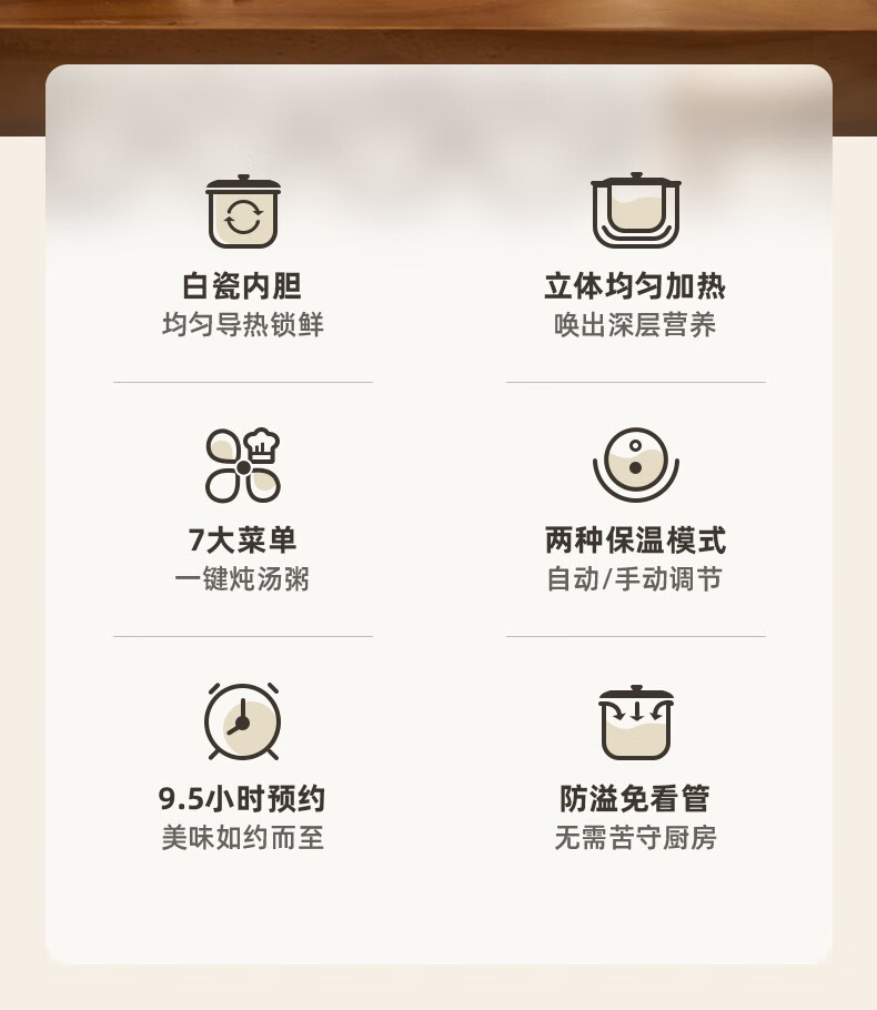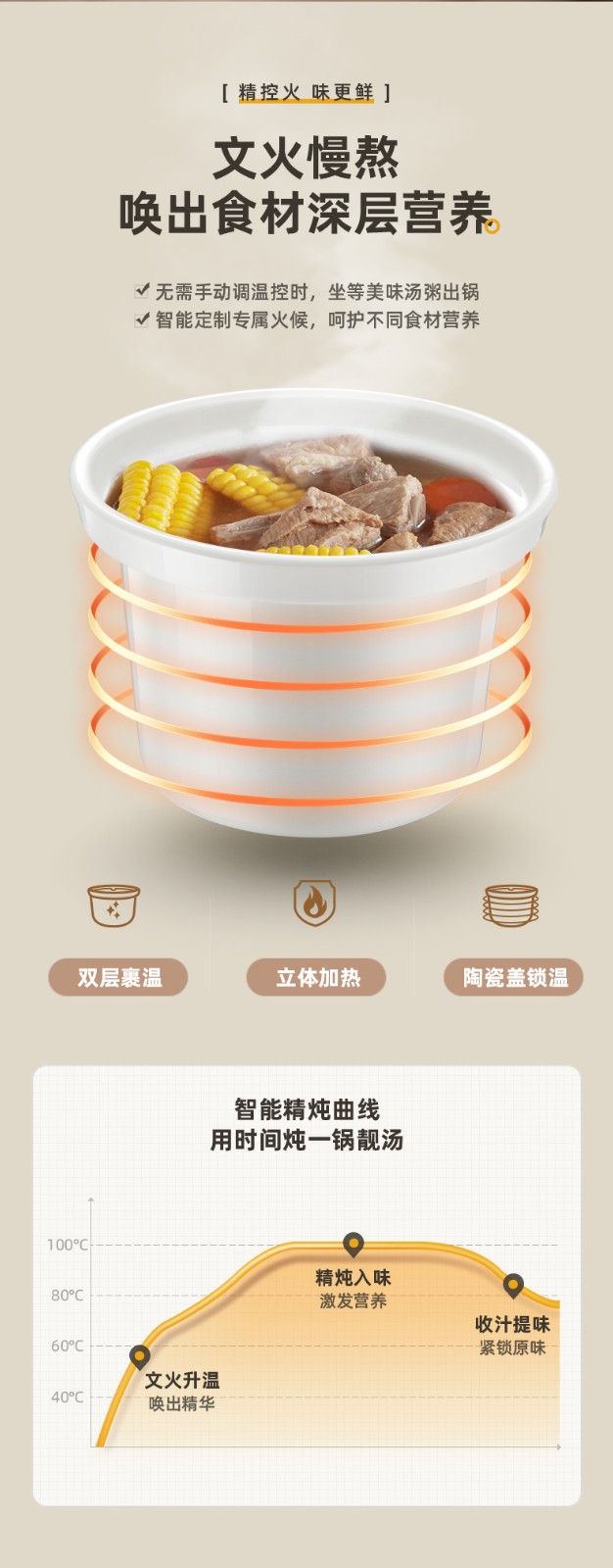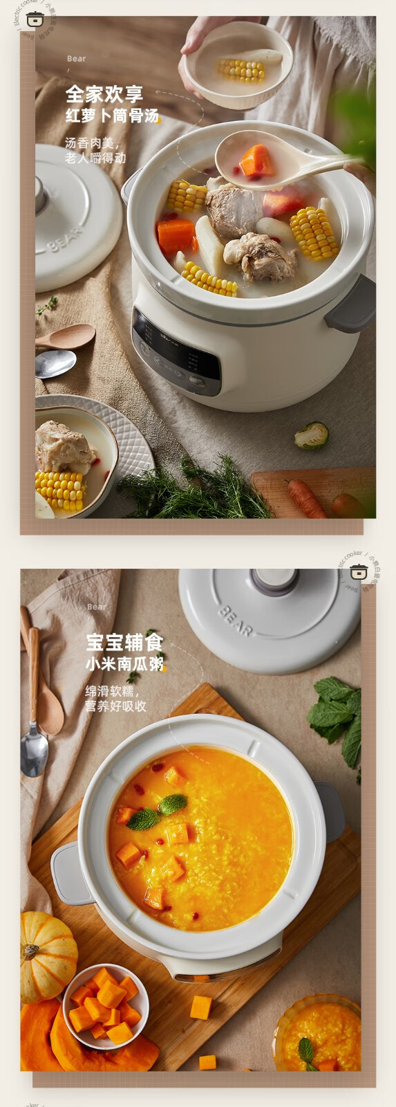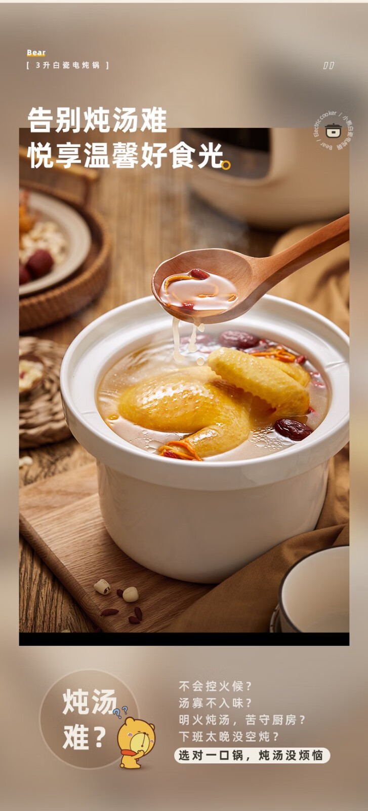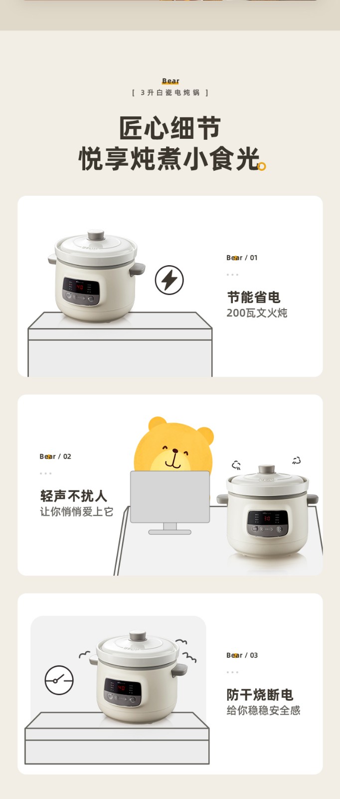 小熊(Bear) 电炖锅电炖盅煲汤锅燕窝炖盅炖汤锅煮粥锅BB煲 3L容量可预约多功能 白瓷内胆DDG-D30H5 自营