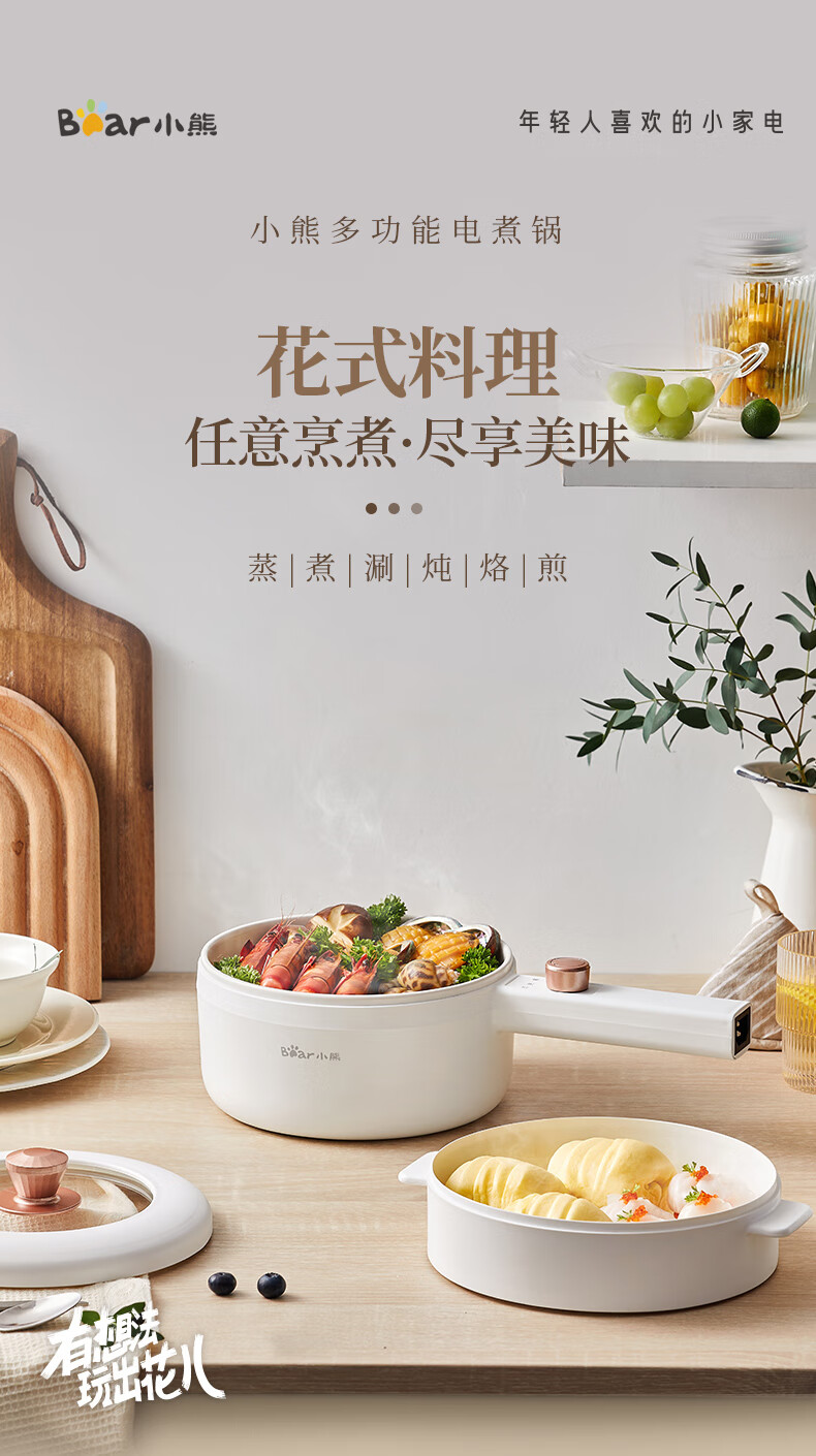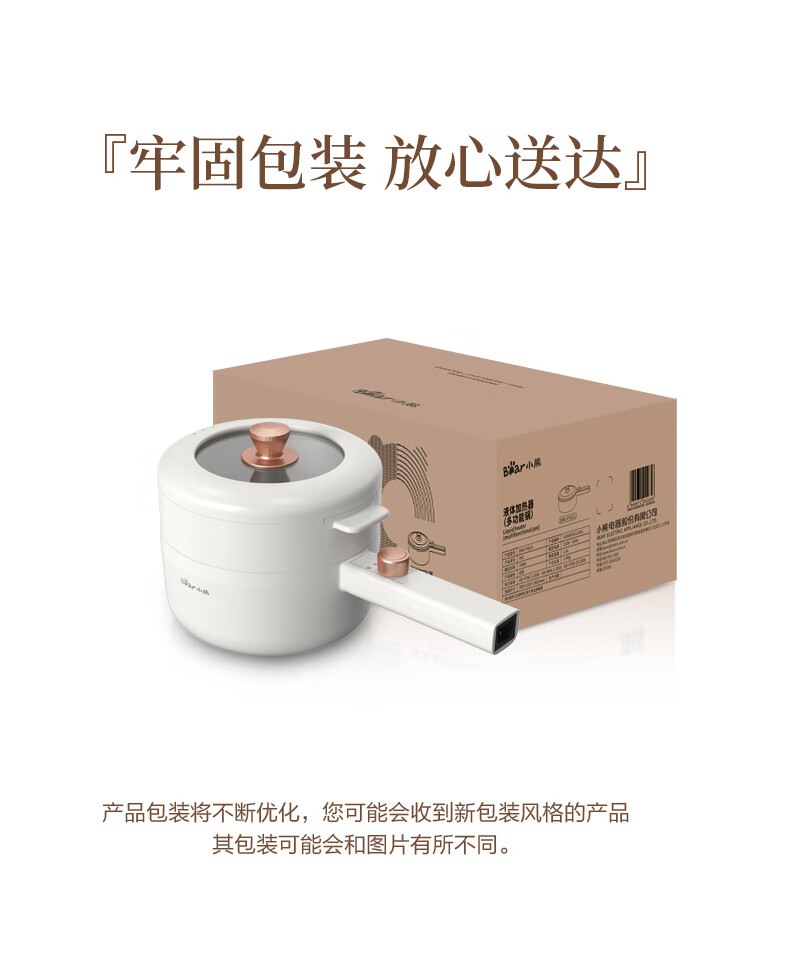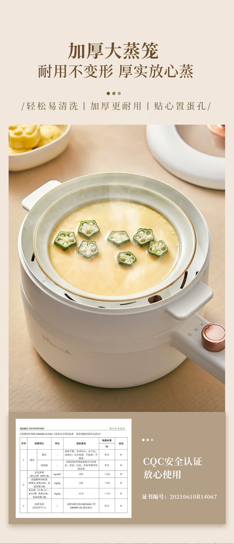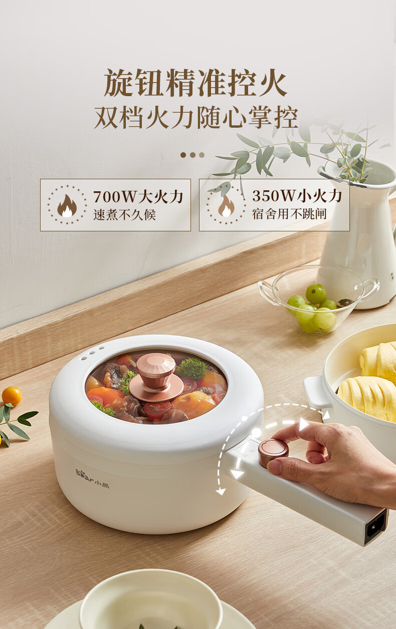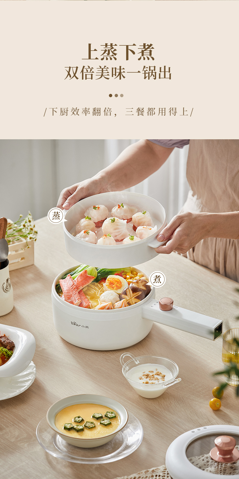 小熊(Bear) 电煮锅小电锅宿舍学生锅火锅锅家用煮面小型迷你锅多功能料理锅电热火锅 2L不锈钢蒸笼DRG-D20Y6 自营