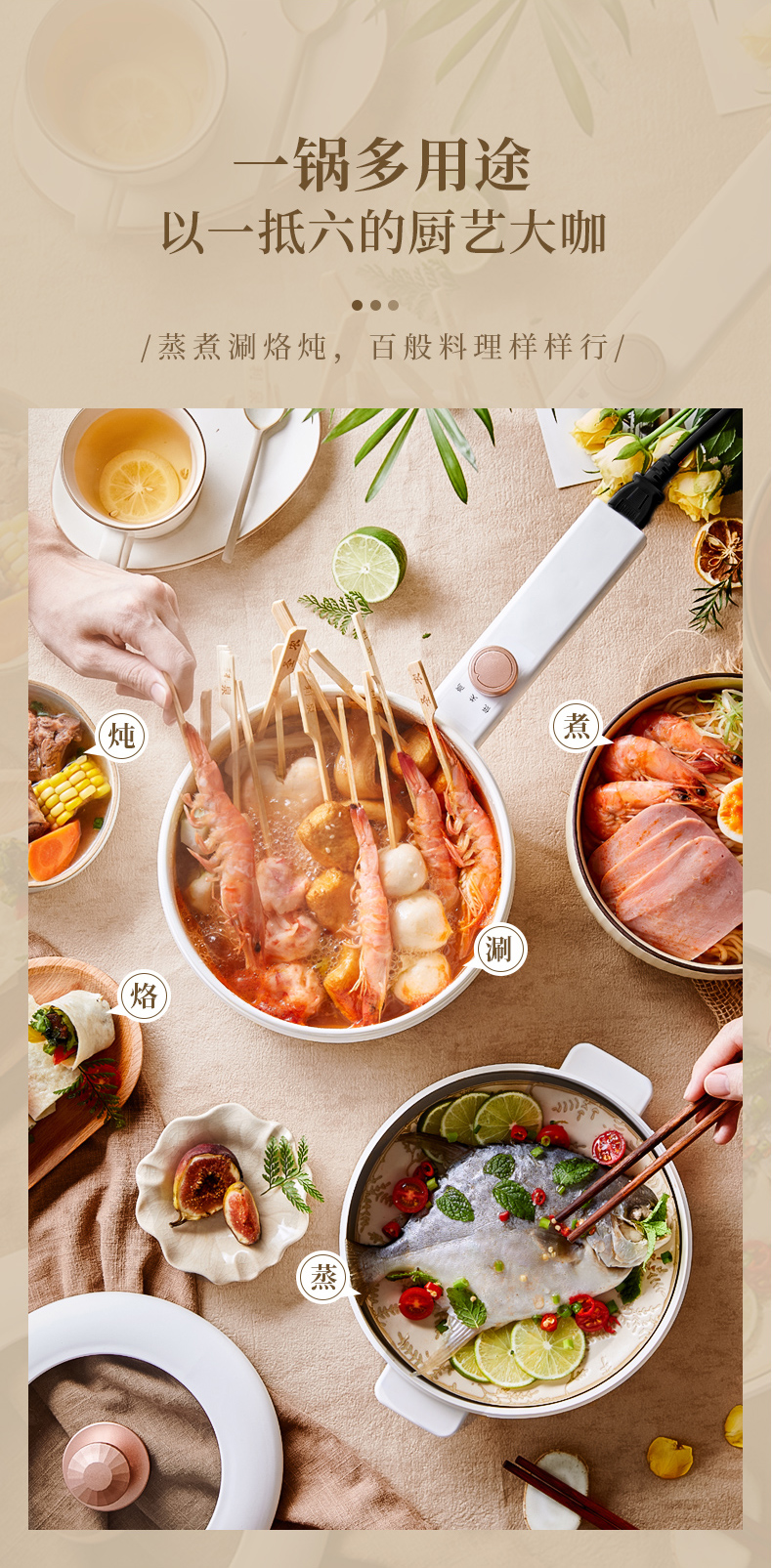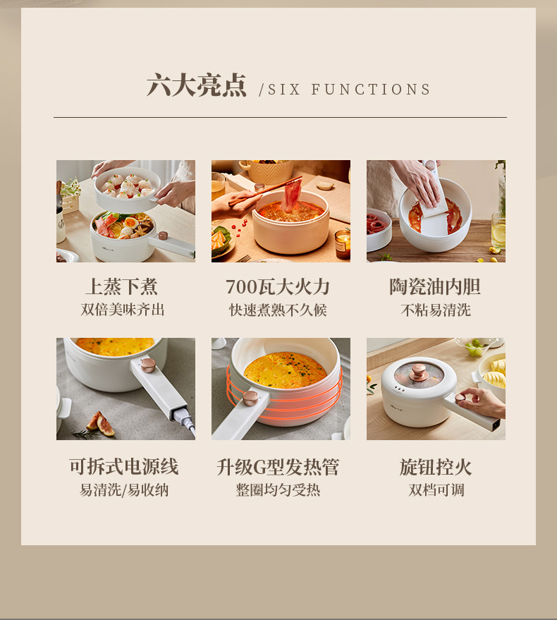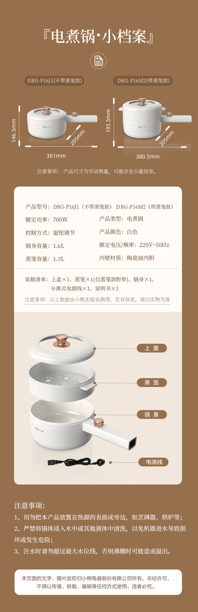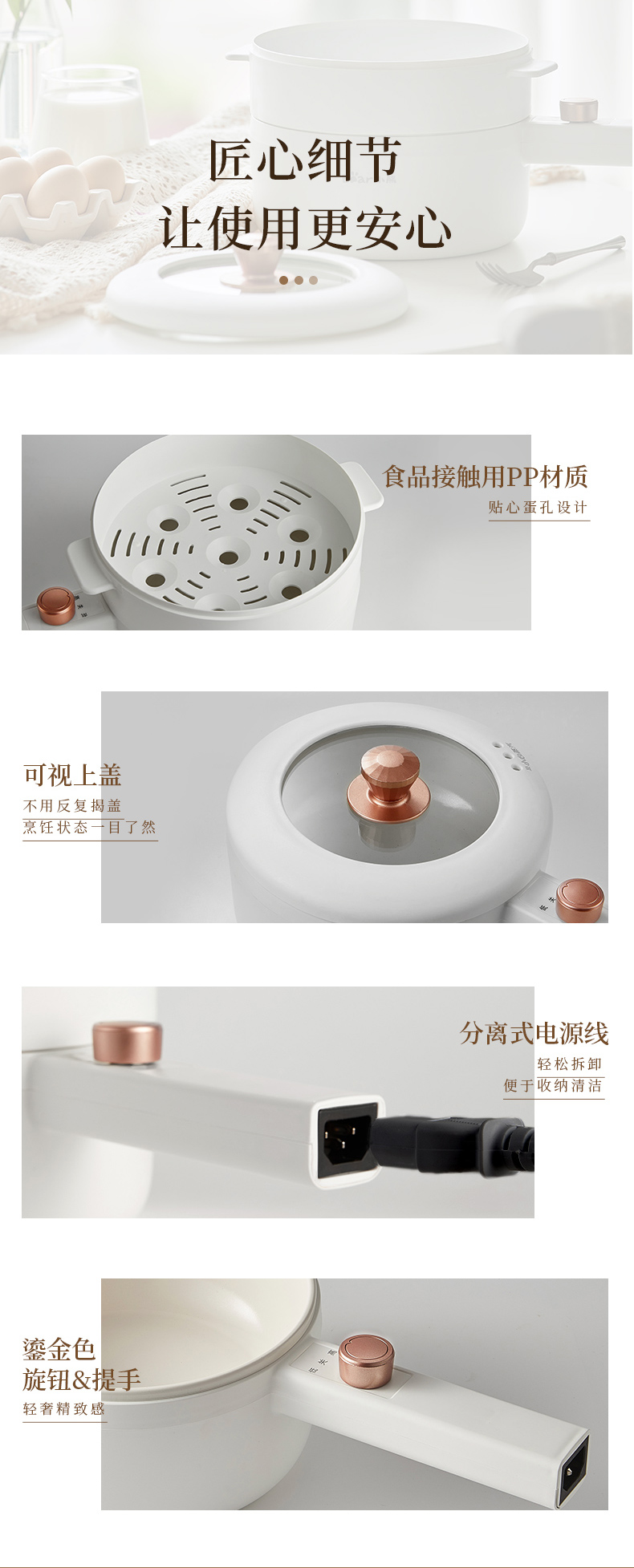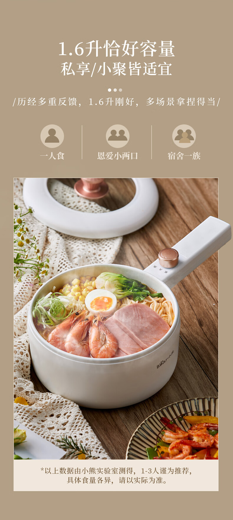 小熊(Bear) 电煮锅小电锅宿舍学生锅火锅锅家用煮面小型迷你锅多功能料理锅电热火锅 2L不锈钢蒸笼DRG-D20Y6 自营