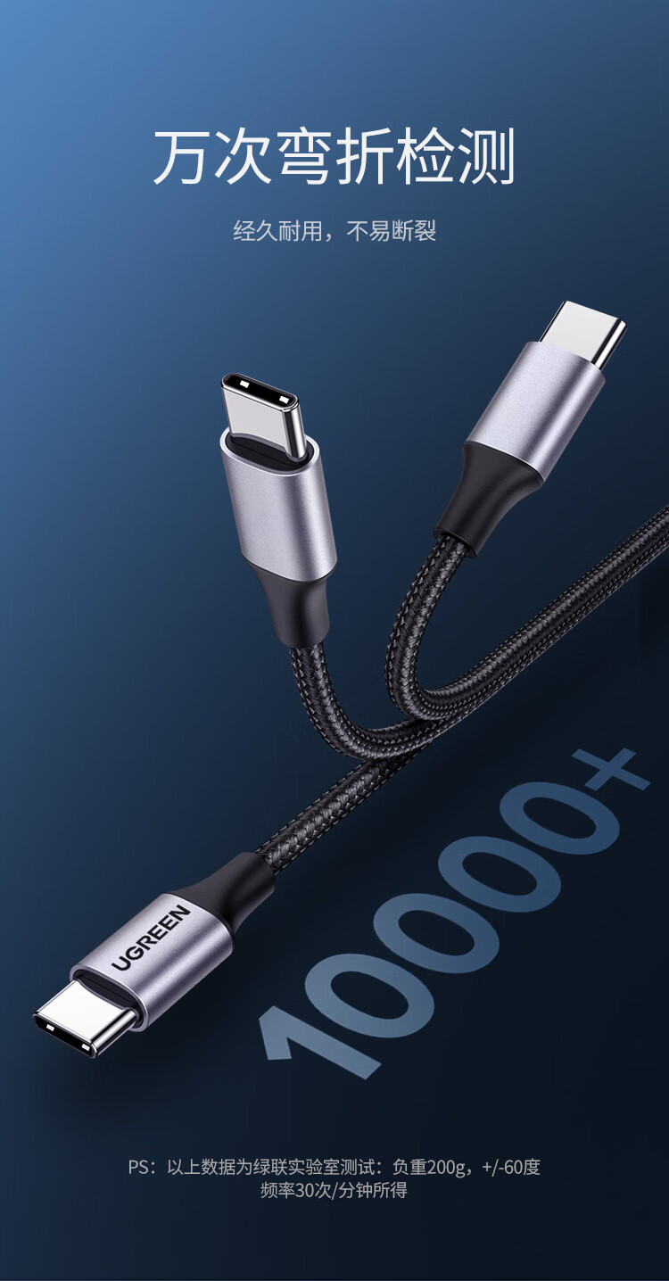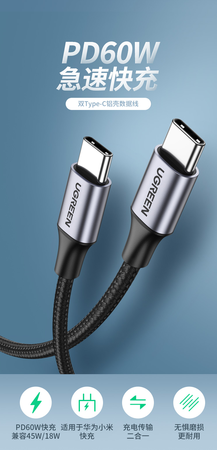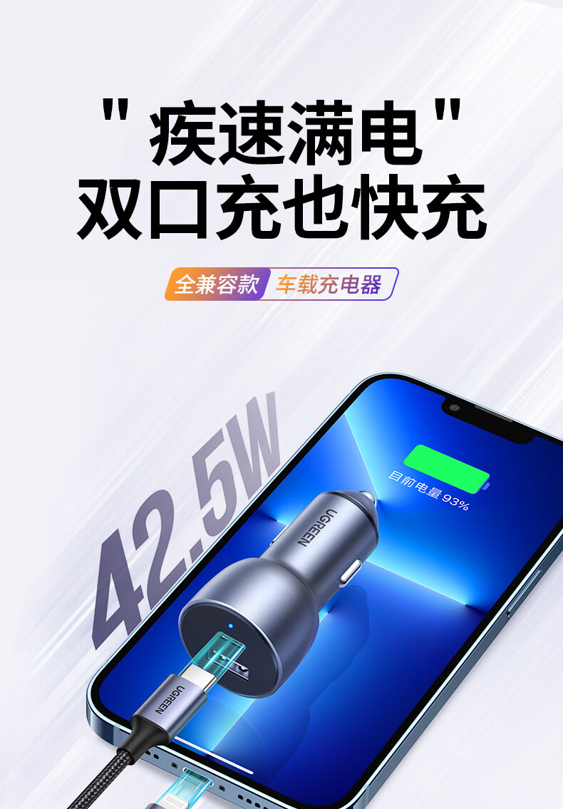 绿联 车载充电套装 内含 双口车载充电器+PD60W双Type-C编织线1米 自营