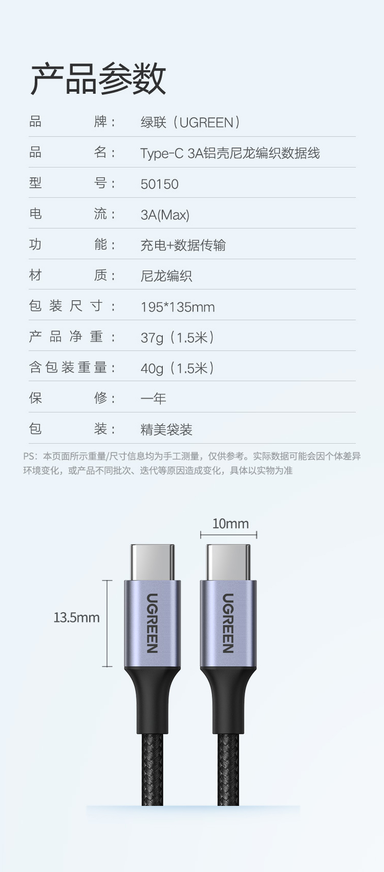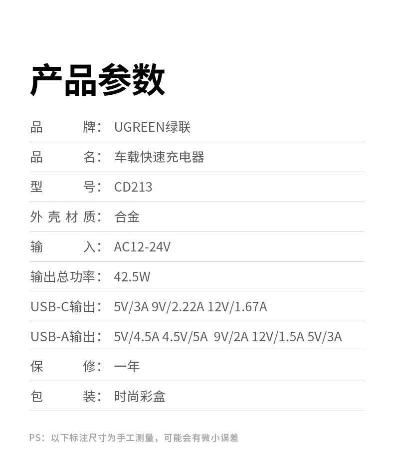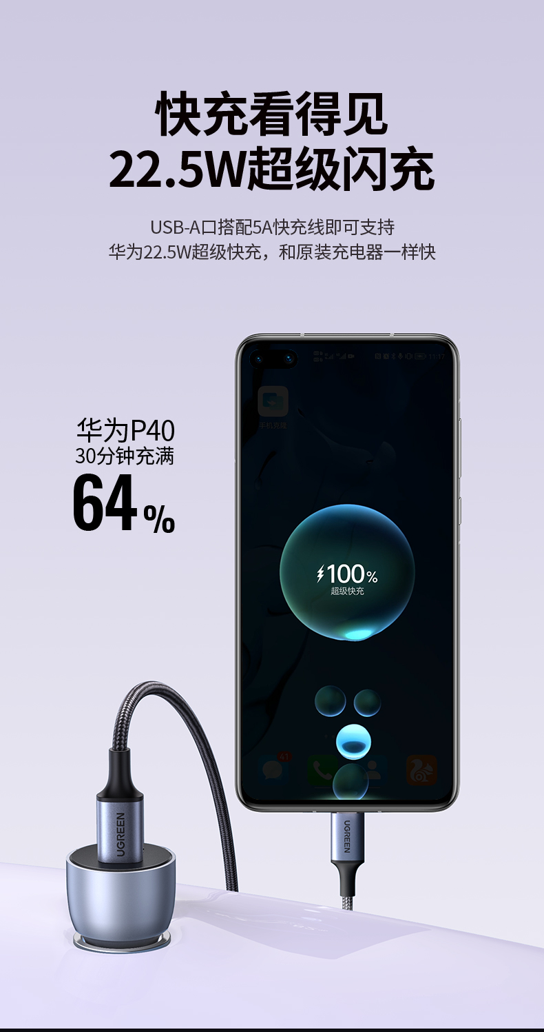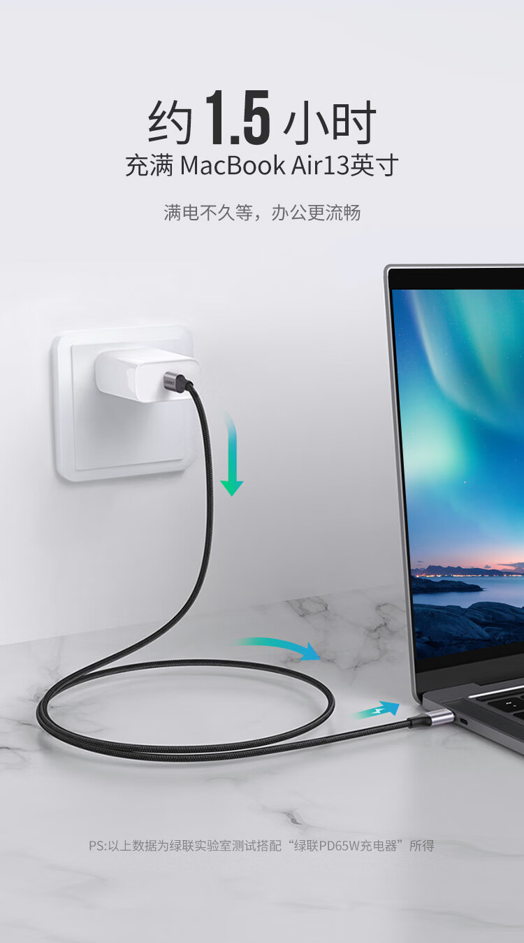 绿联 车载充电套装 内含 双口车载充电器+PD60W双Type-C编织线1米 自营