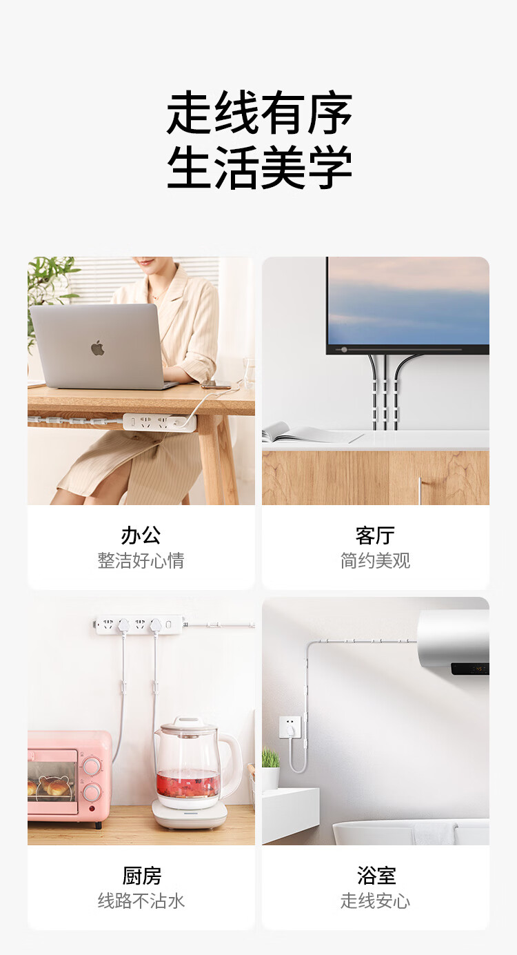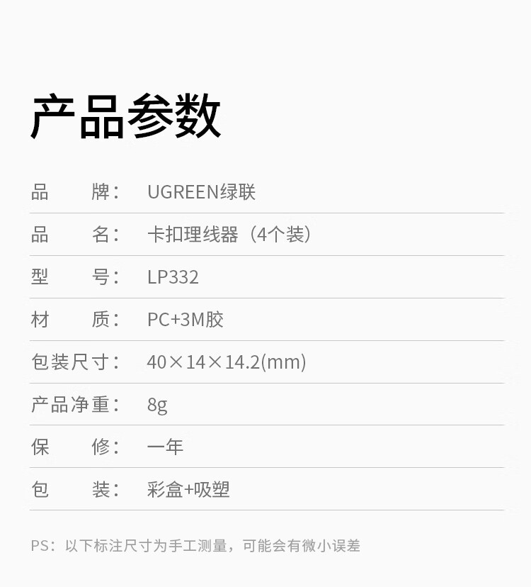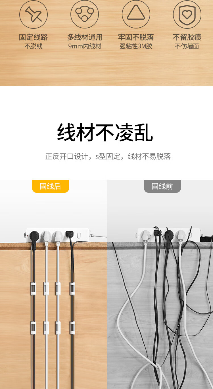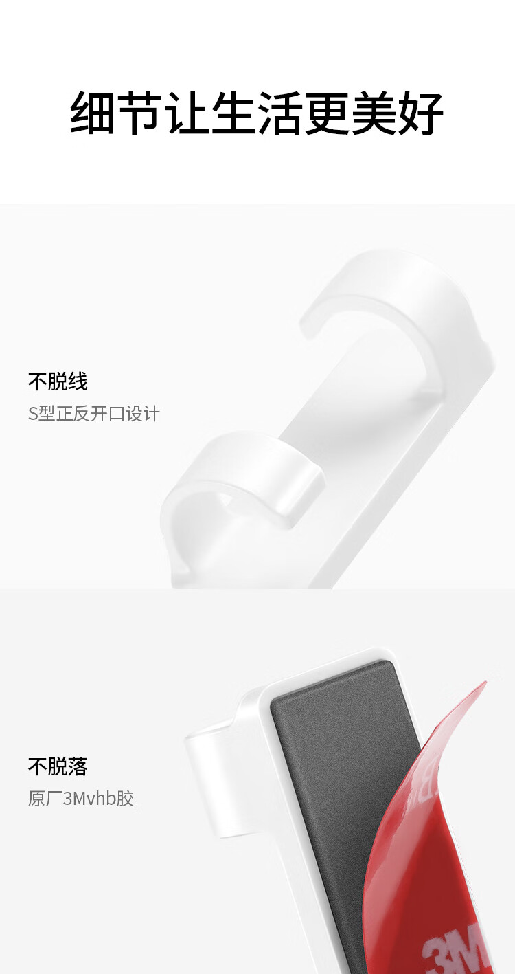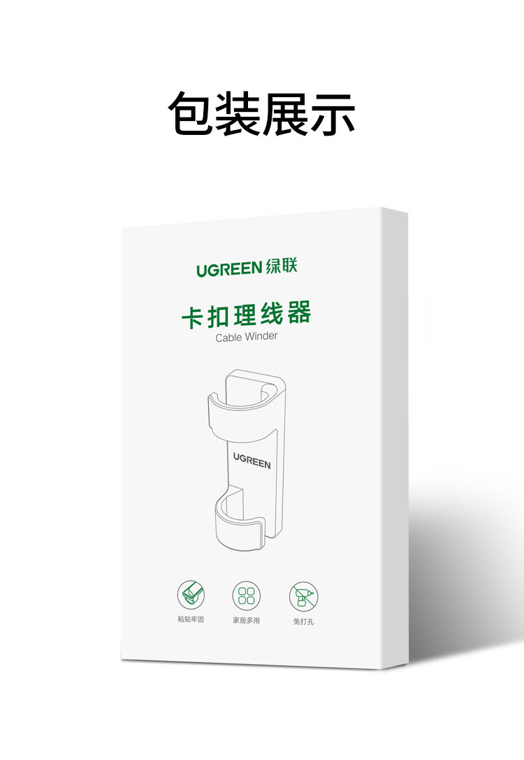 绿联(UGREEN)电线理线器 固定器 免钉墙贴无痕电源线收纳整理走线夹 网线卡扣自粘神器4个装 20560 自营