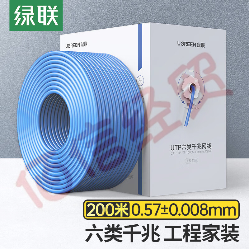 绿联(UGREEN)六类网线【0.57±0.008mm纯铜线芯】CAT6类千兆网络箱线 工程家装监控布线非屏蔽200米 90234 自营