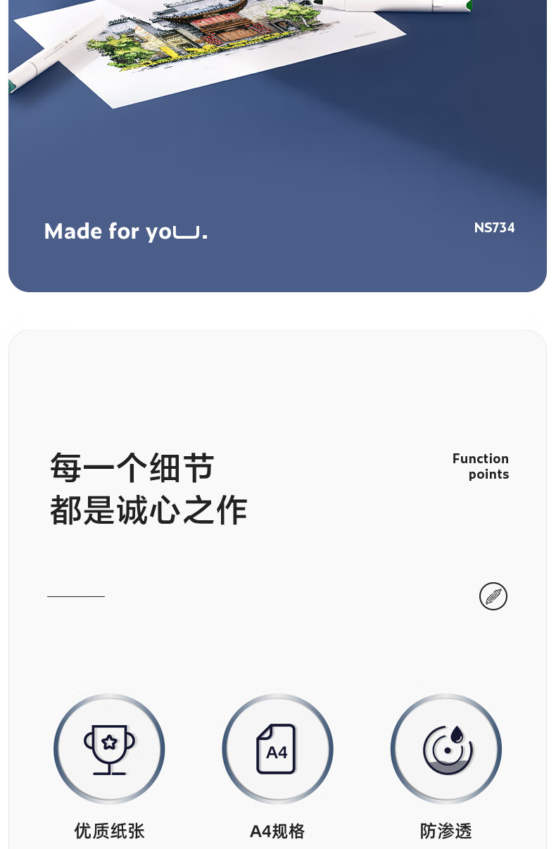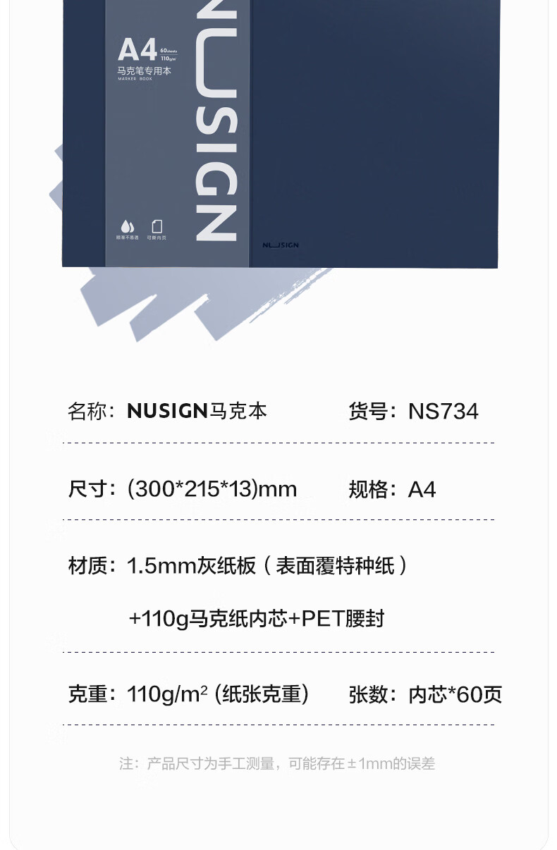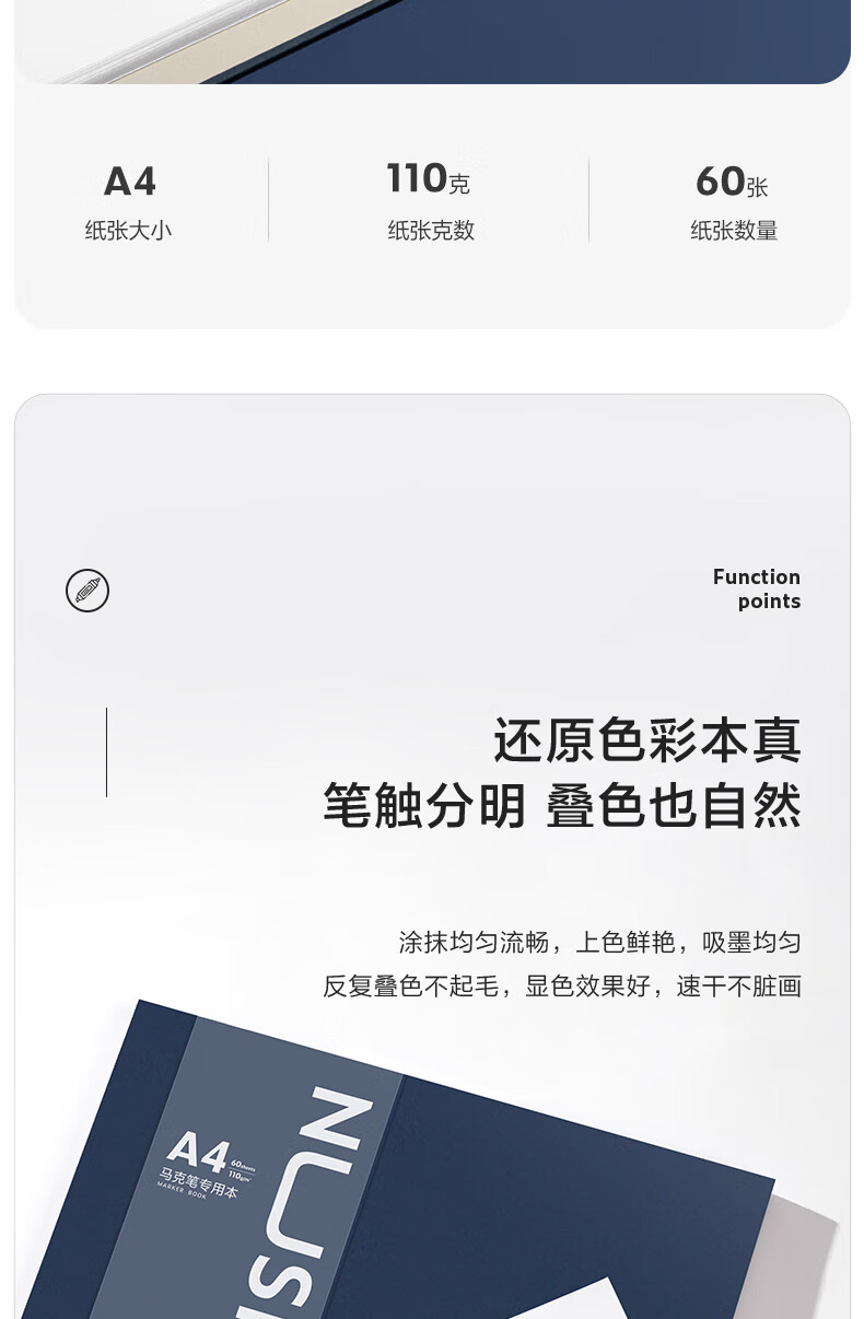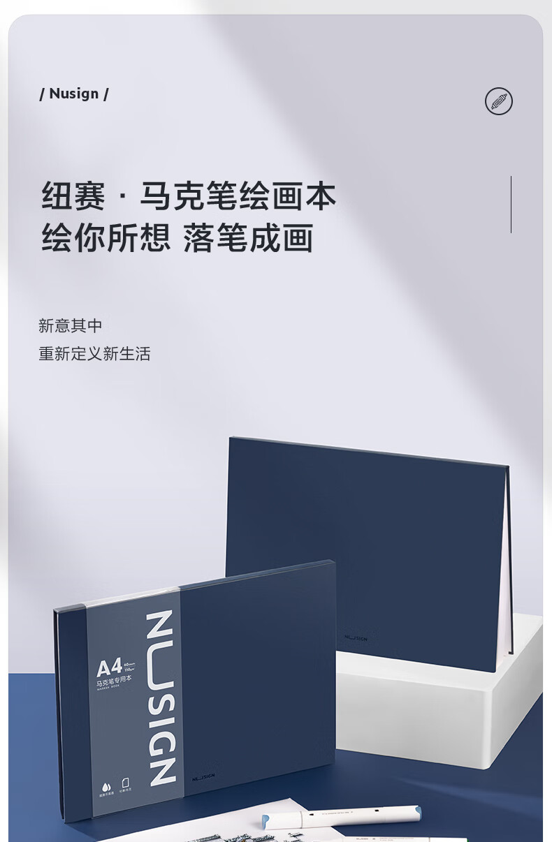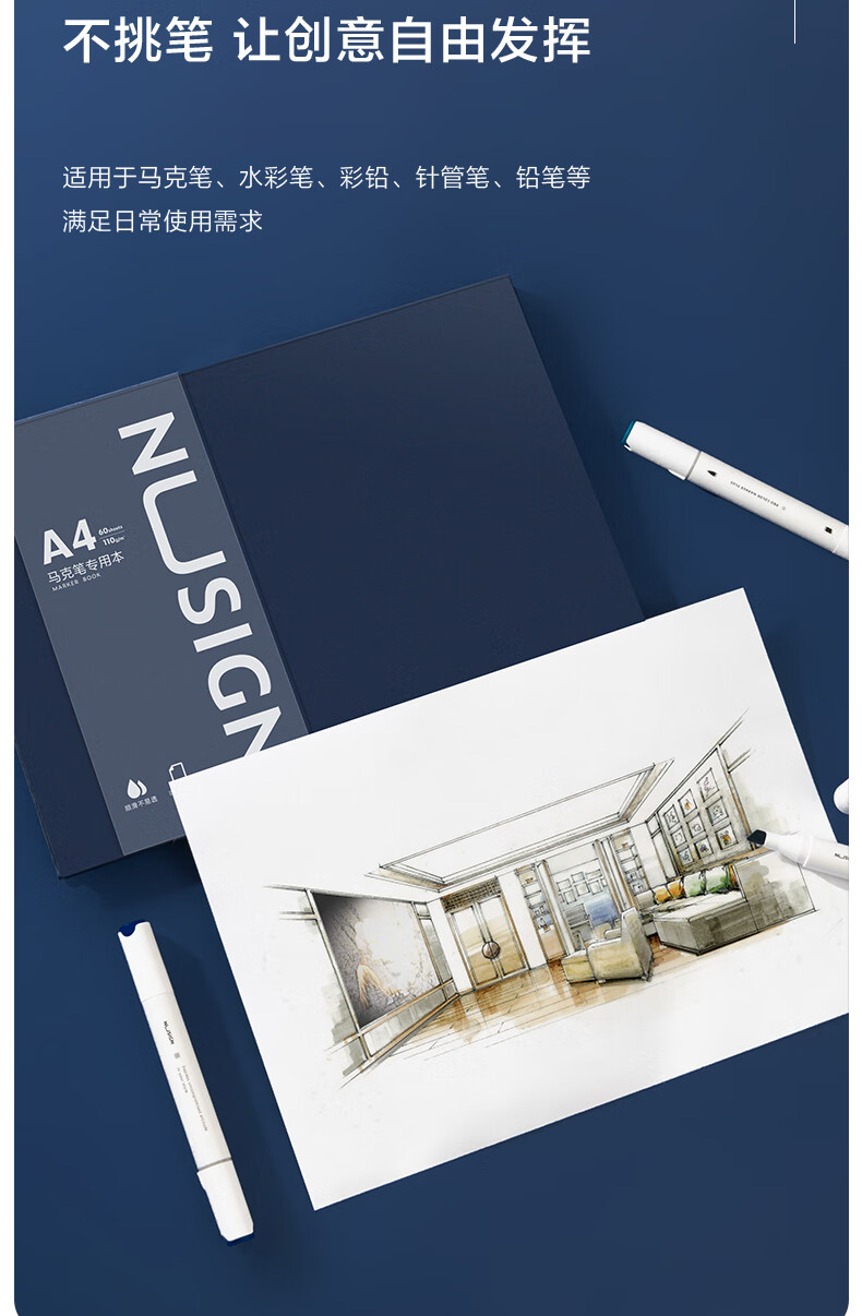 得力(deli)纽赛马克笔专用绘图本 60页A4马克本110g 学生绘画手绘美术画画涂鸦NS734 自营