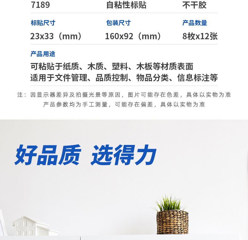 得力7189自粘性标贴(白)23*33mm(25本)标签贴 标签纸自粘性标签贴纸 不干胶标签贴纸便签贴 自营