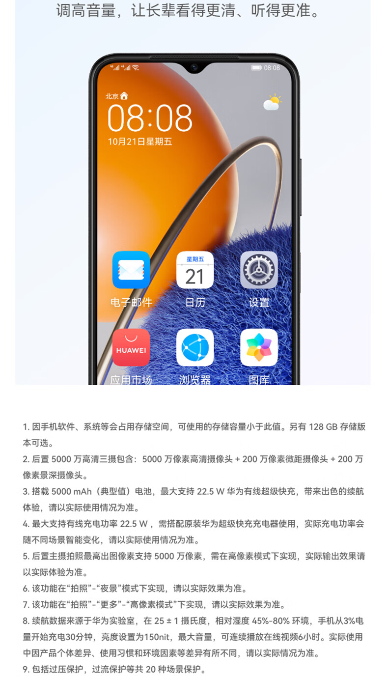 华为畅享 50z 5000万高清AI三摄 5000mAh超能续航 256GB 宝石蓝 大内存鸿蒙智能手机 自营
